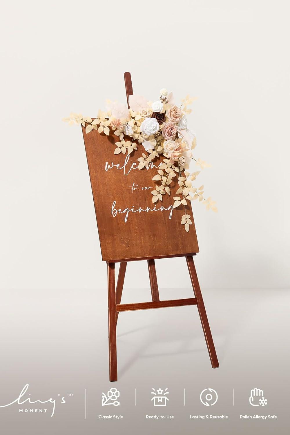 Ling’s moment 2pcs Wedding Flowers Garland Artificial Floral Swag Arch Decorations Greenery Arrangements Lilac & Gold Ceremony Reception Garden Easel Wall Home Entryway Outdoor NOT Include Sign(White & Beige & Blush)