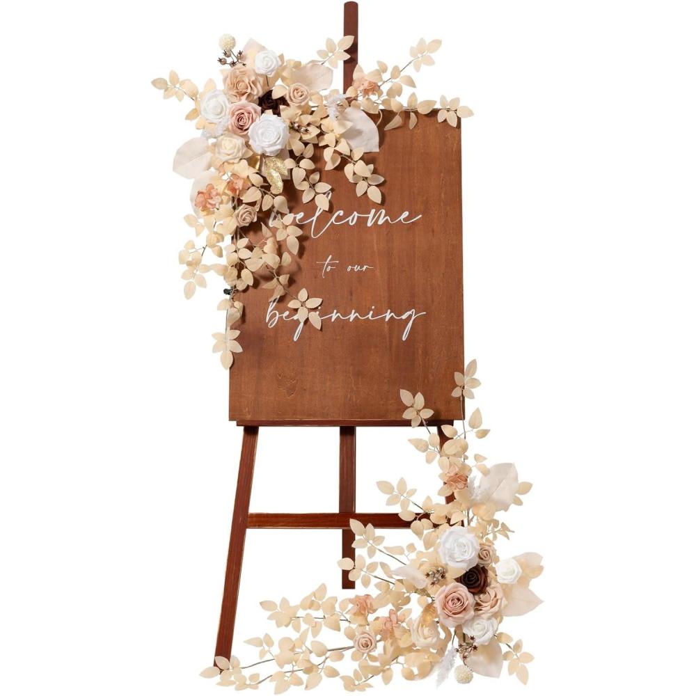 Floral Sign swag: This floral arrangement is designed for welcome sign, and its floral pile is design-friendly for any other use, such as decor for bride and groom chair, Sweetheart/Head table, simple arch arbor, wedding car, home mirror, window, and garden gazebo. Available for recycling use after the wedding, very friendly to environmental protection.