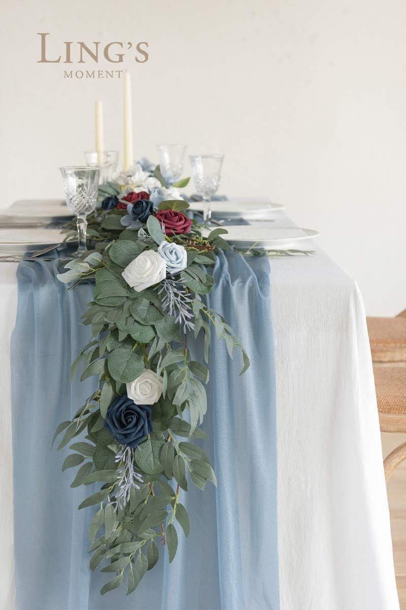 Ling’s moment 6-Pack 10ft Nude Sheer Chiffon-Like Table Runner with Silver Sparkle Table Decor for Wedding Rustic Boho Shower Party(Nude, Set of 6)(Dusty Blue)