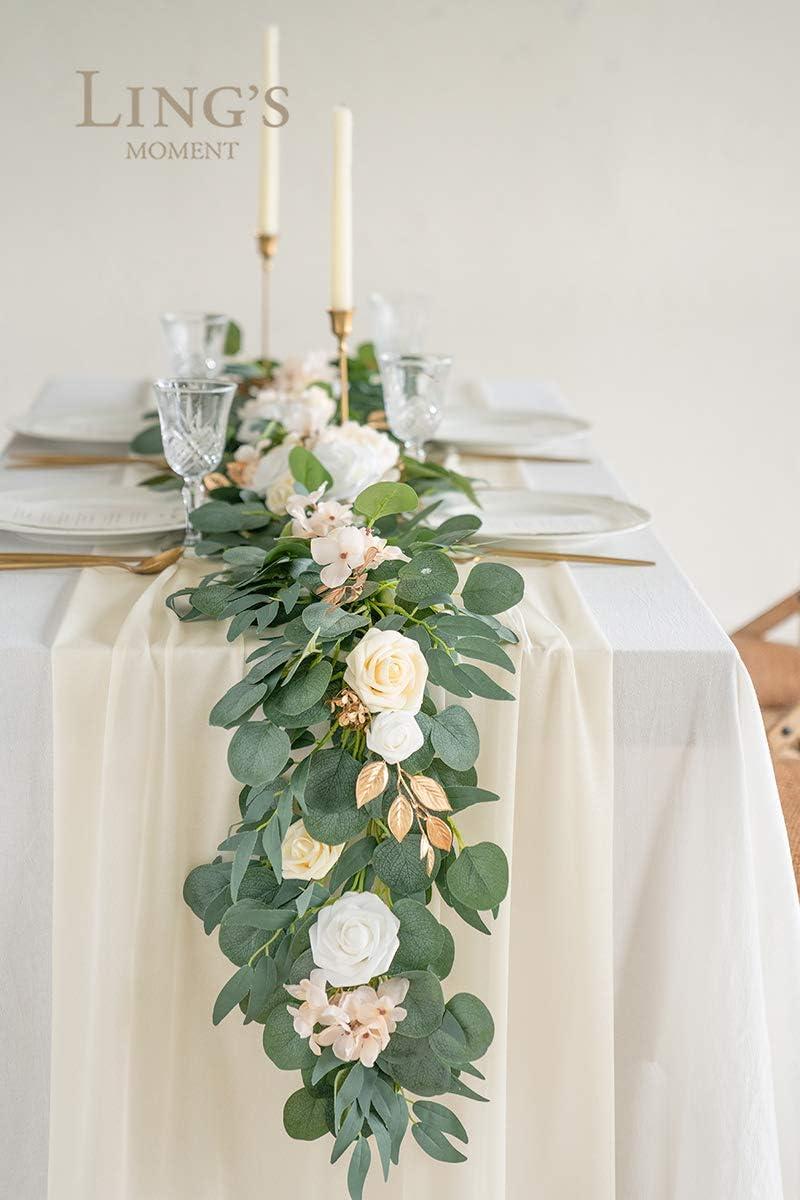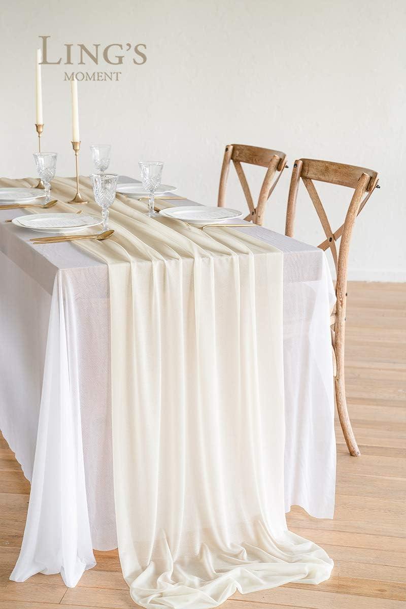Ling’s moment 6-Pack 10ft Nude Sheer Chiffon-Like Table Runner with Silver Sparkle Table Decor for Wedding Rustic Boho Shower Party(Nude, Set of 6)(Ivory)