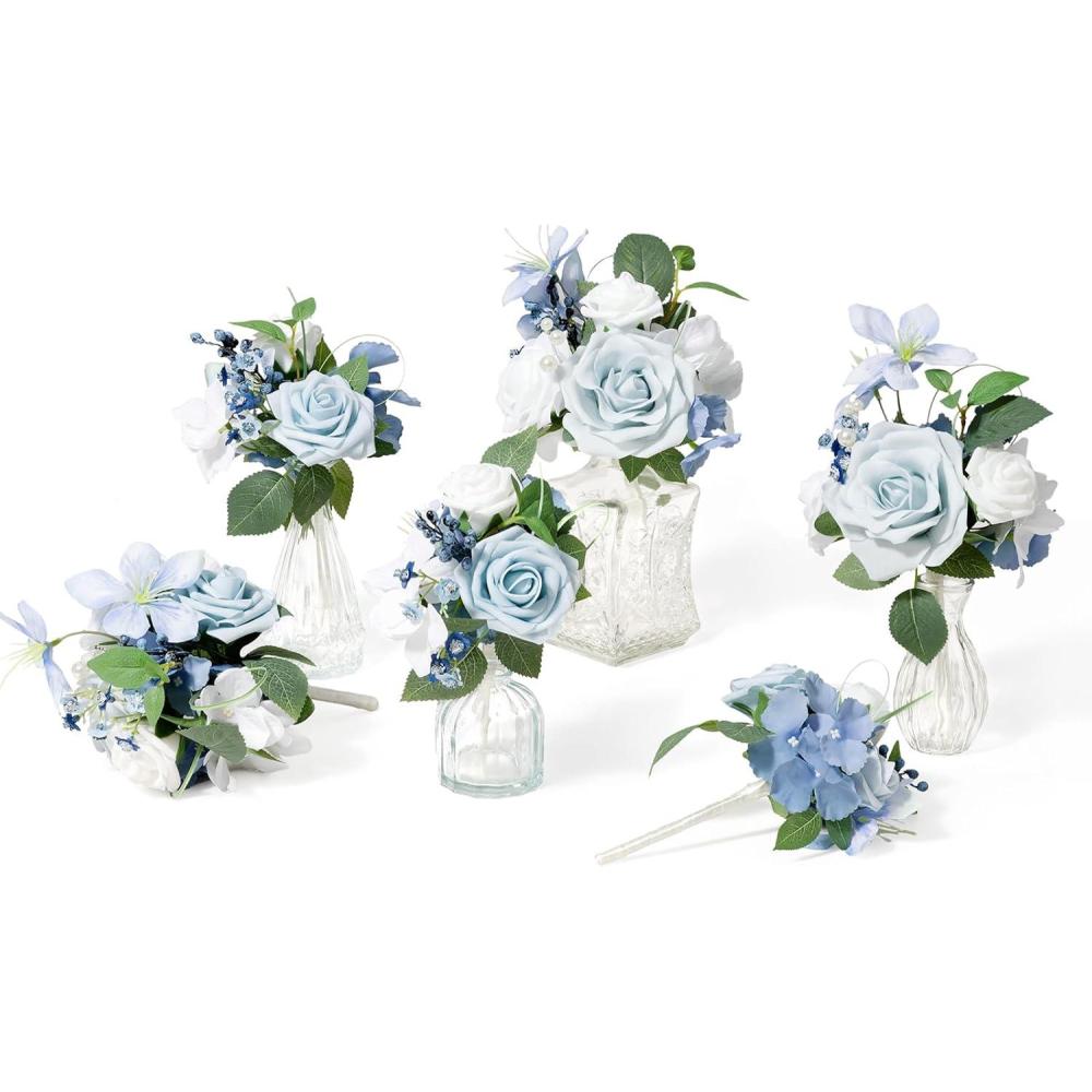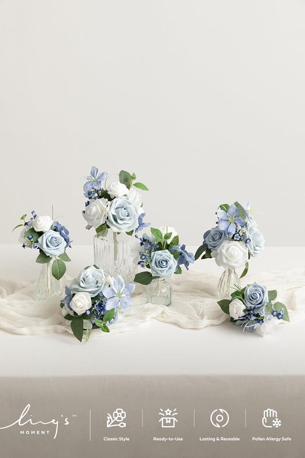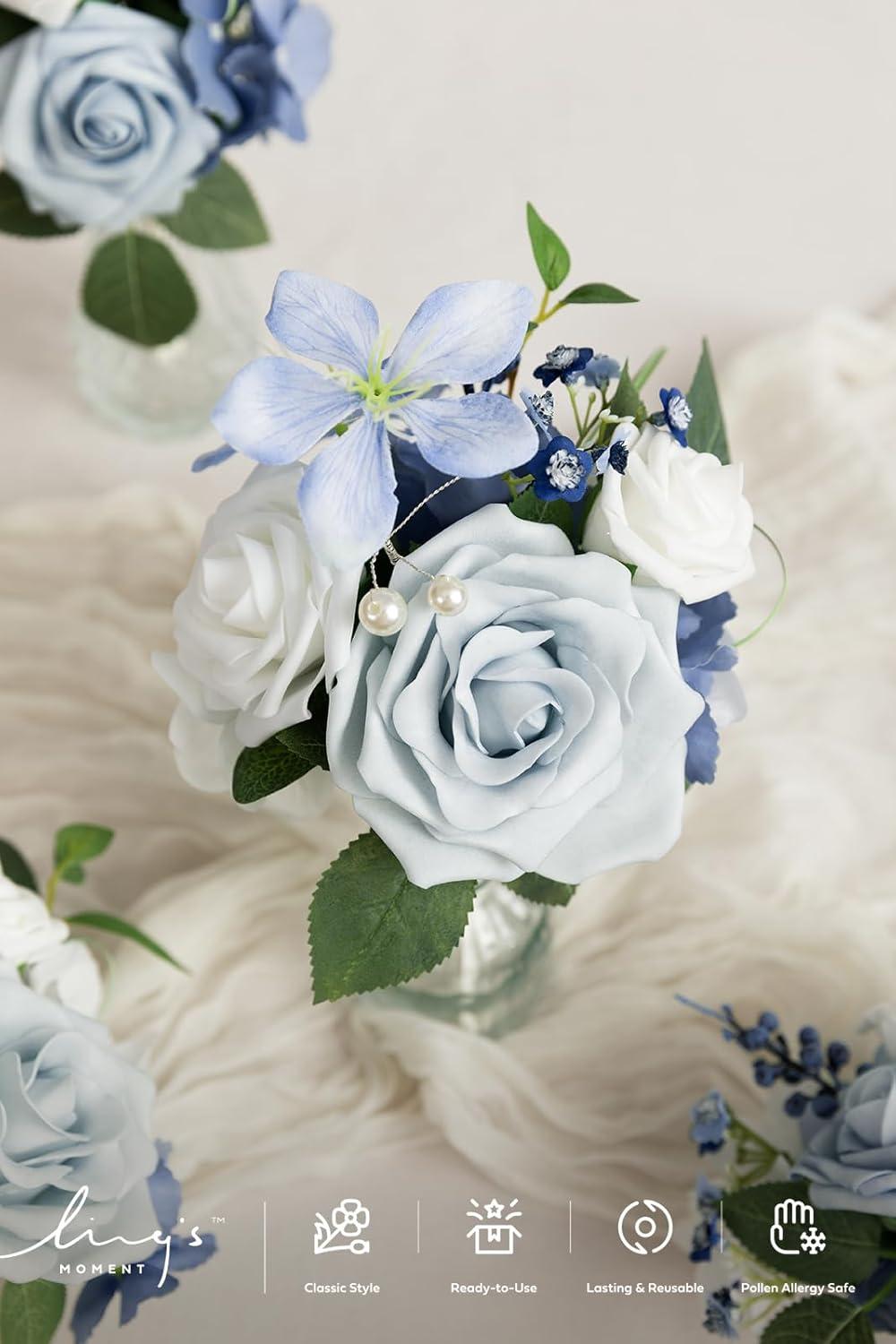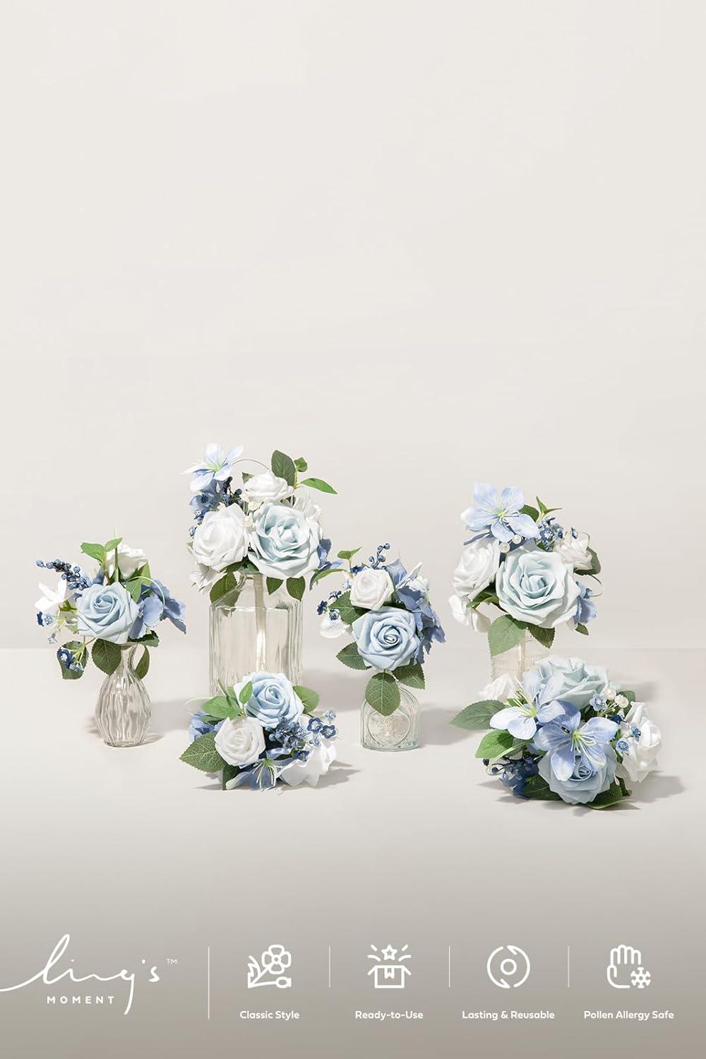 Ling’s moment 6 Pack Lilac & Light Purple Wedding Centerpieces Mini Bouquets Table Decor Flower Rose Pre-Made Floral Three Large Bouquets and Three Small Ones(Blu-dusty Blue & Navy)