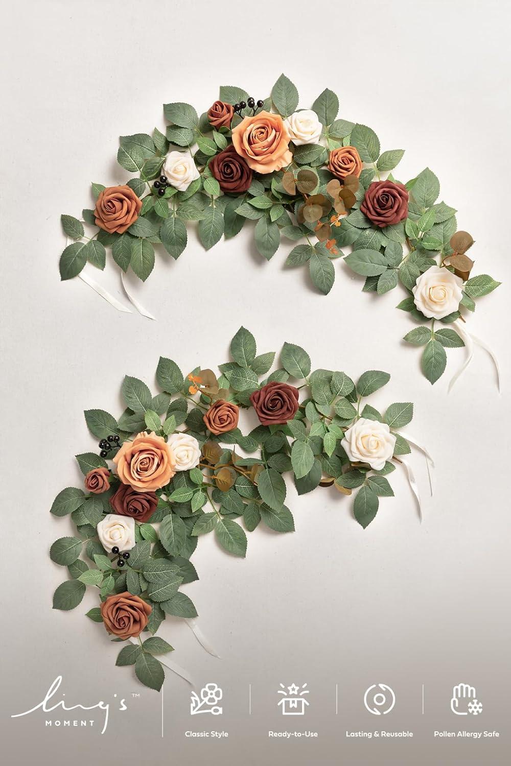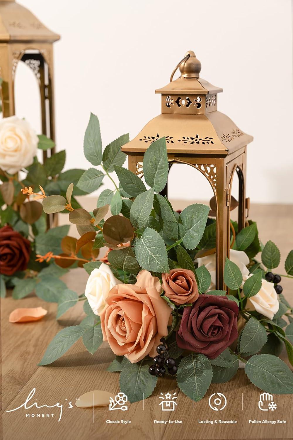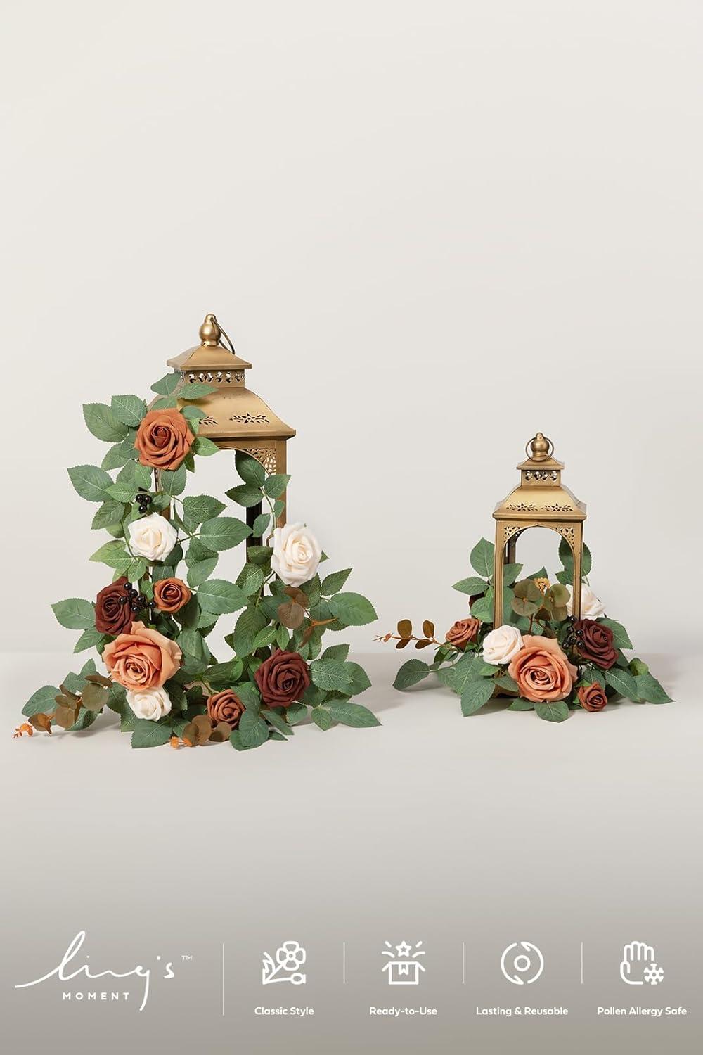 Ling’s moment 6Pack 2ft Artificial Flowers Garland Dusty Rose & Mauve Lantern Flower Centerpieces Mauve Wedding Aisle Decor Chair Flowers Arch Floral for Signs DIY Table Wall Window Cake Decoration(Or-sunset Terracotta)