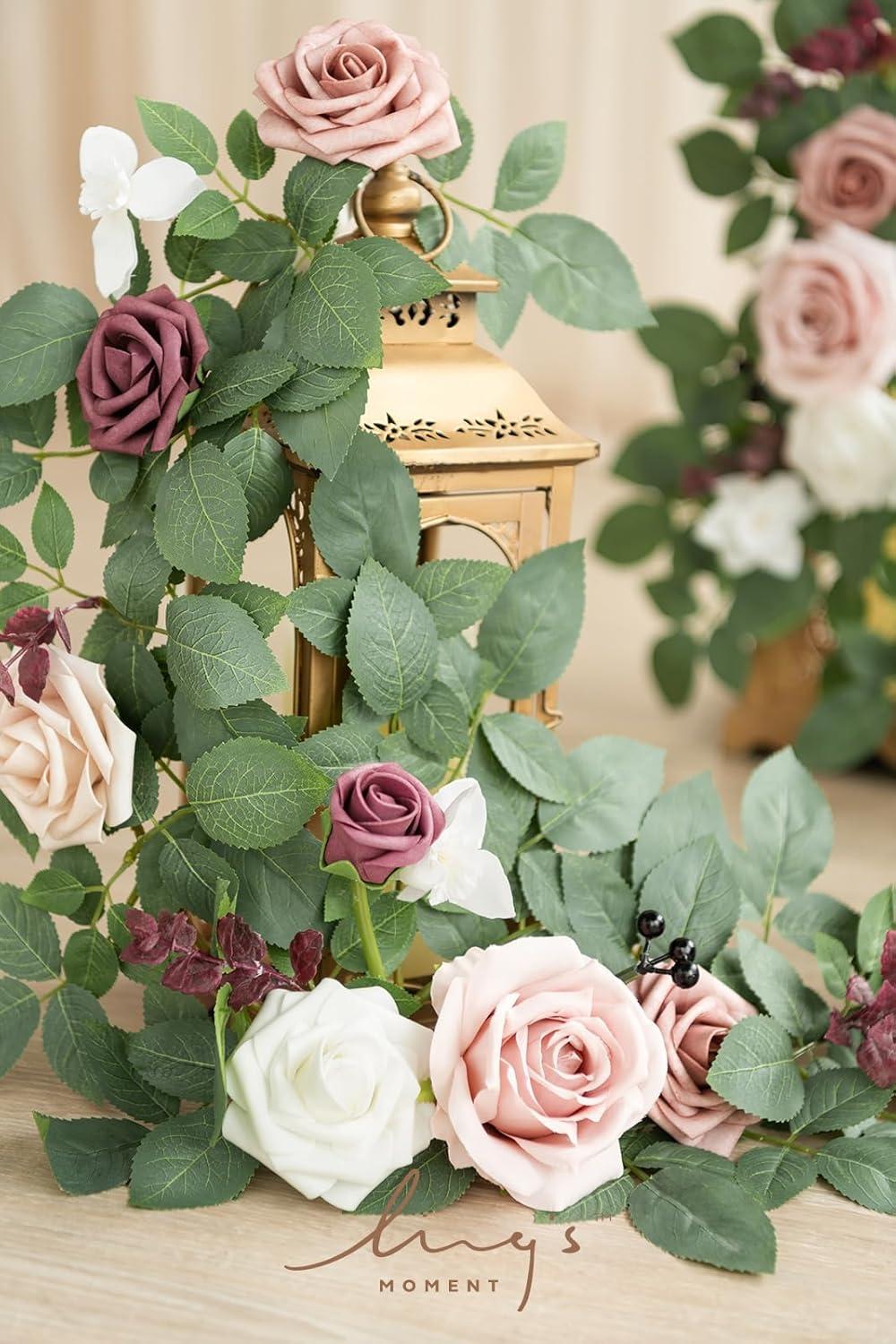 Ling’s moment 6Pack 2ft Artificial Flowers Garland Dusty Rose & Mauve Lantern Flower Centerpieces Mauve Wedding Aisle Decor Chair Flowers Arch Floral for Signs DIY Table Wall Window Cake Decoration(Pk-dusty Rose & Navy)