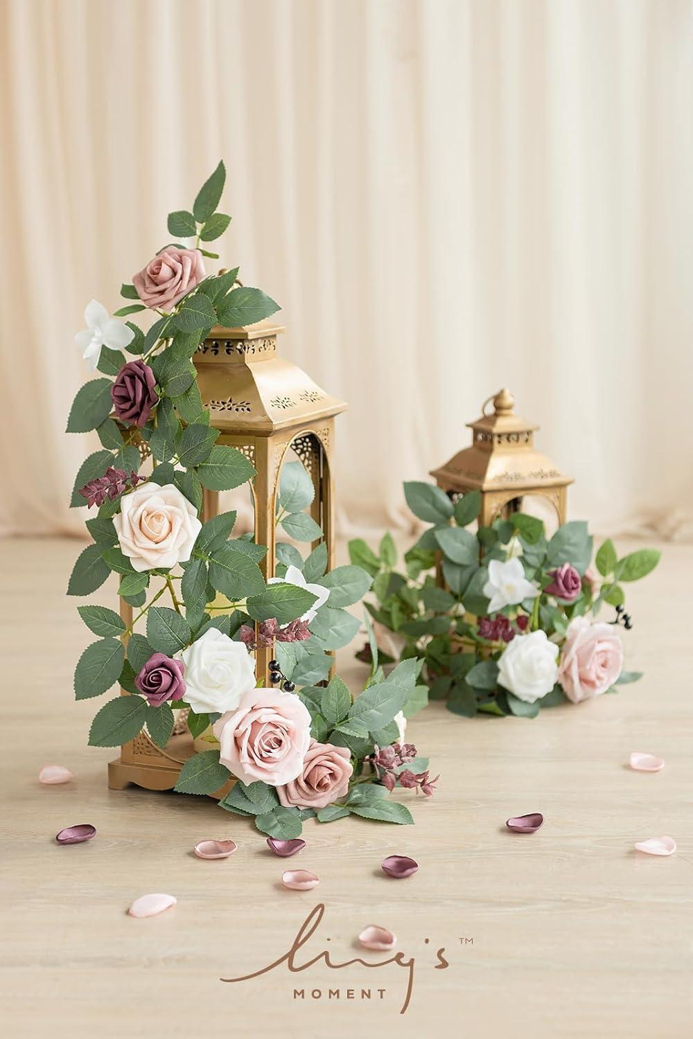 Ling’s moment 6Pack 2ft Artificial Flowers Garland Dusty Rose & Mauve Lantern Flower Centerpieces Mauve Wedding Aisle Decor Chair Flowers Arch Floral for Signs DIY Table Wall Window Cake Decoration(Pk-blush & Cream)