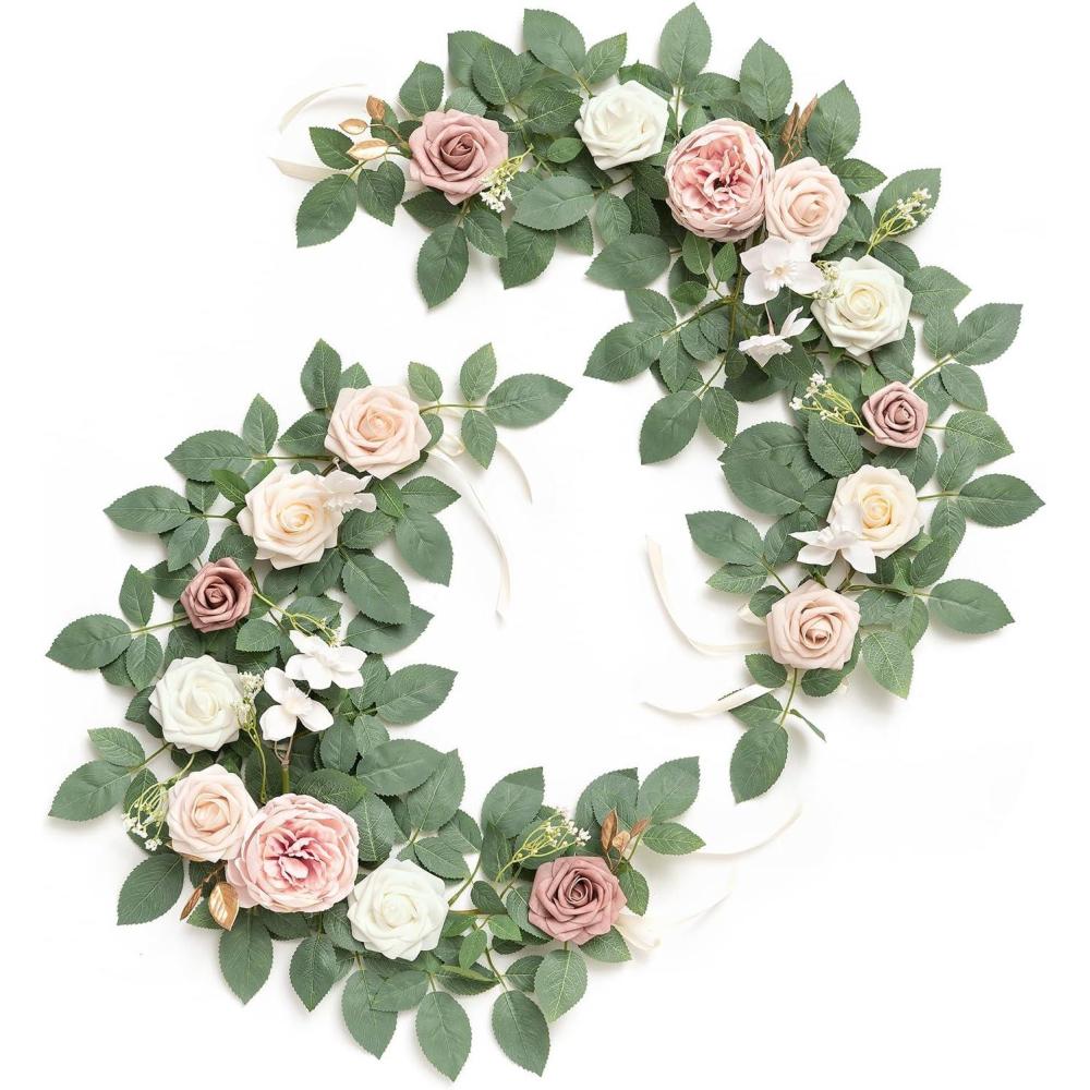 Flexi-Extend: The fake floral garland are lightweight and flexibleand each vine includes two ribbons.6 garlands can be spliced ​​together (splicing device) to form a 12ft long garland, which can be used to decorate tabletop, arch, wall, etc.