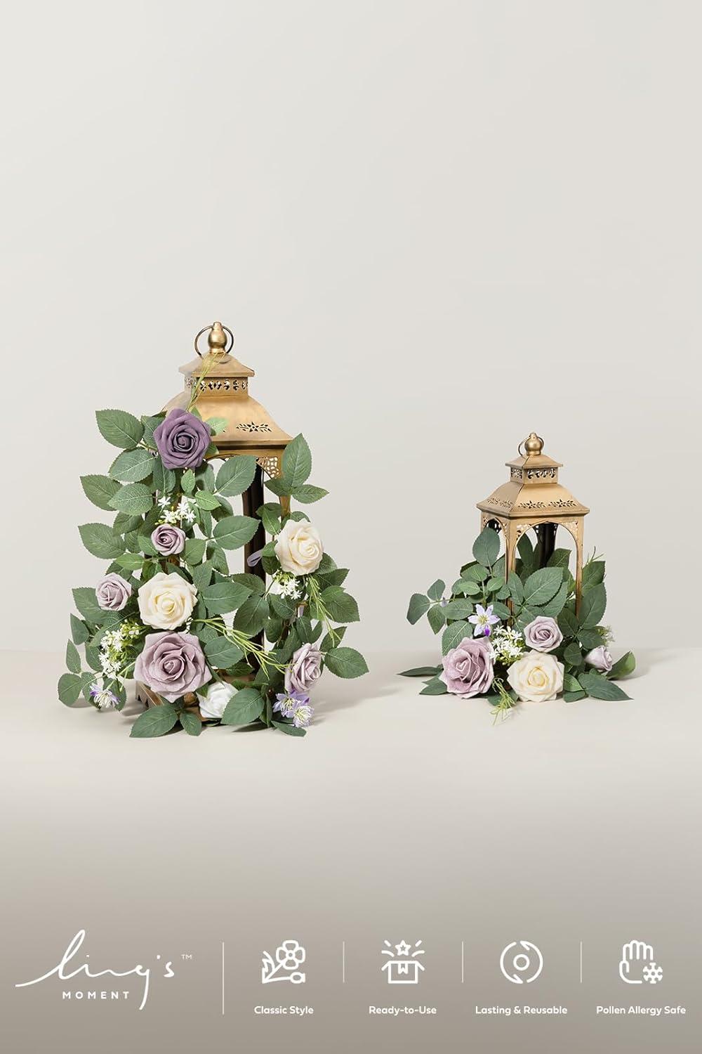 Ling’s moment 6Pack 2ft Artificial Flowers Garland Dusty Rose & Mauve Lantern Flower Centerpieces Mauve Wedding Aisle Decor Chair Flowers Arch Floral for Signs DIY Table Wall Window Cake Decoration(Prpl-lilac & Gold)