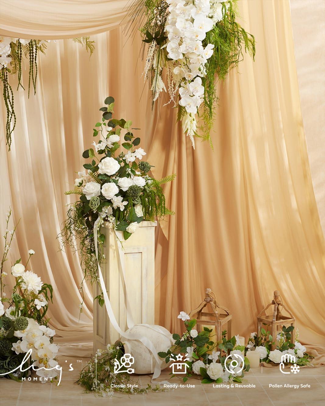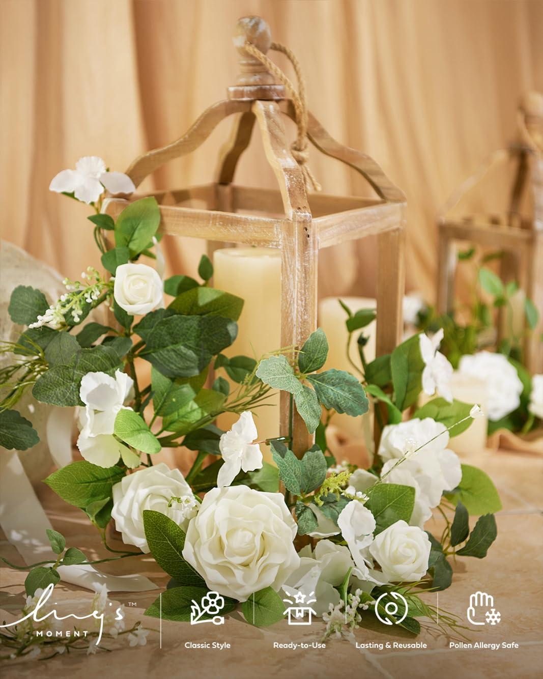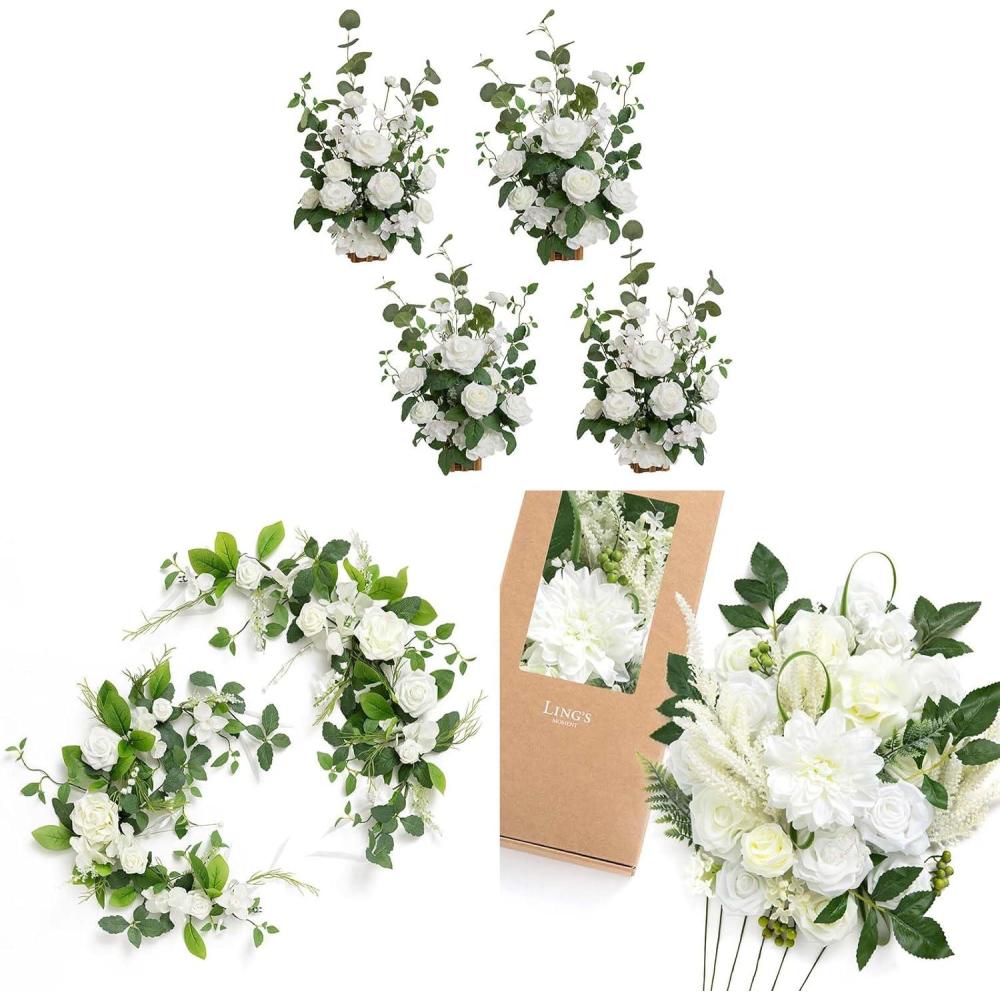 Size: The small freestanding flower arrangements are 17.5″ in height and 10″ in width. Each flower garland is 2ft in length