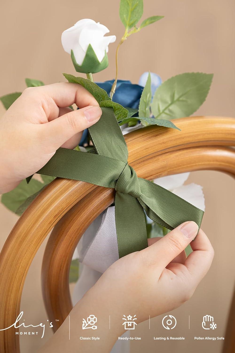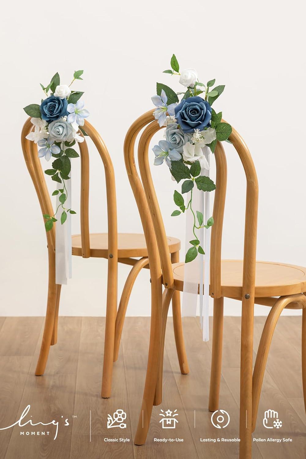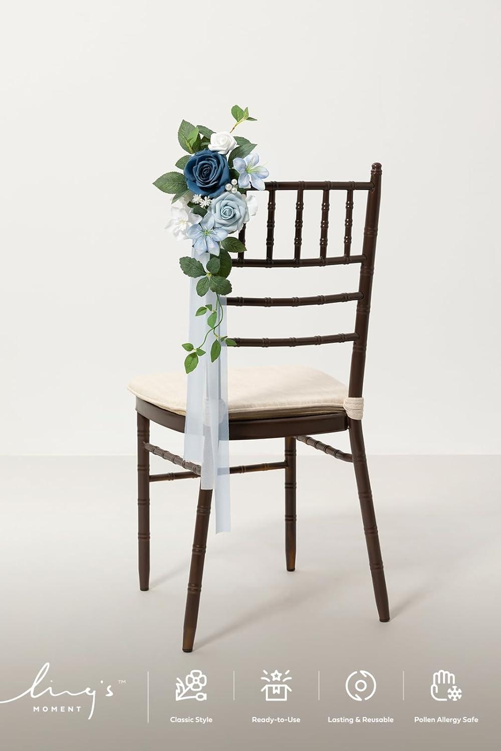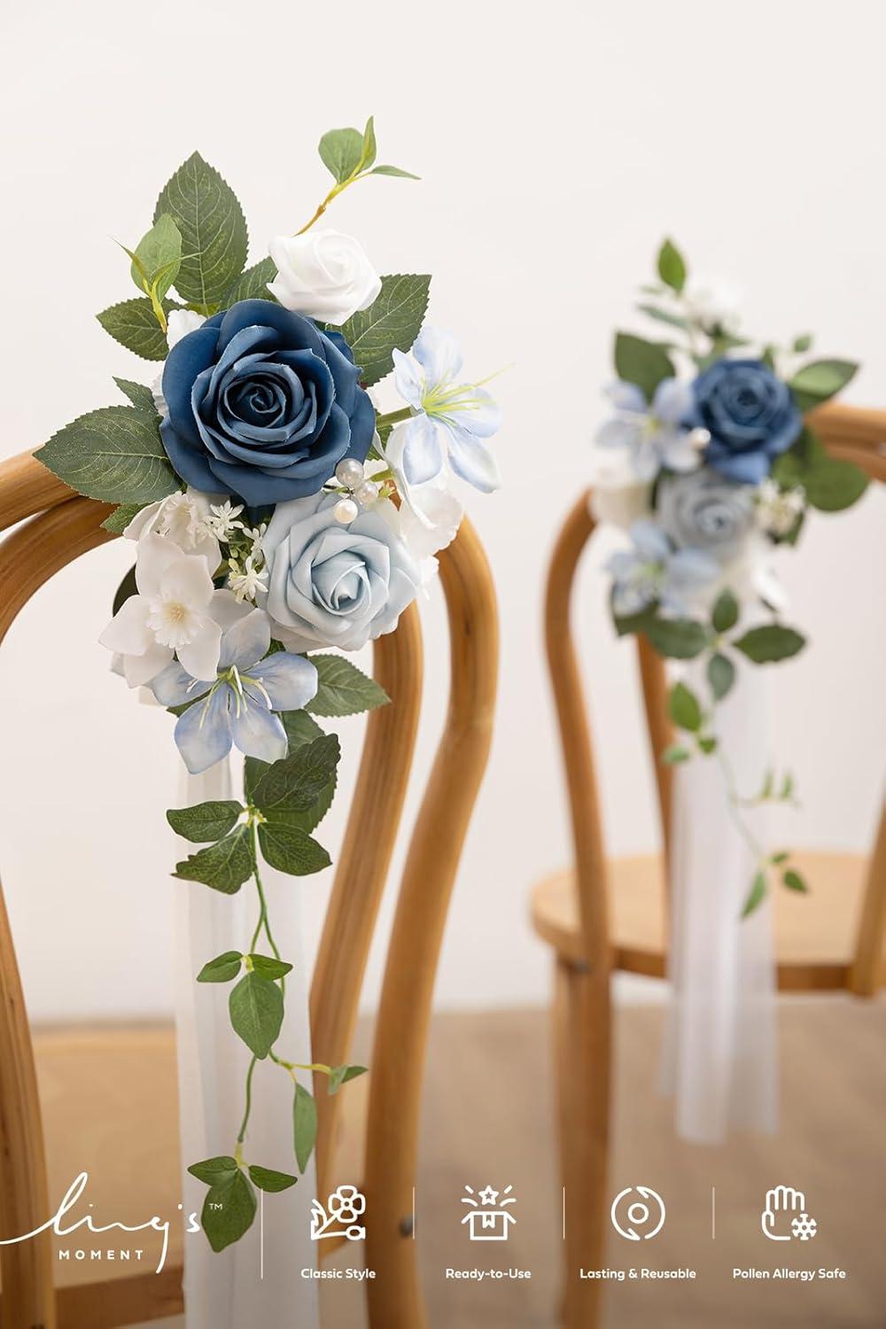 imageLings moment 8 Wedding Artificial Aisle Pew Flowers Chair Decorations Arrangements with Chiffon Ribbons Bordeaux Red for Ceremony Reception Chair Back Floral Decor Reception Church Party OutdoorBludusty Blue
