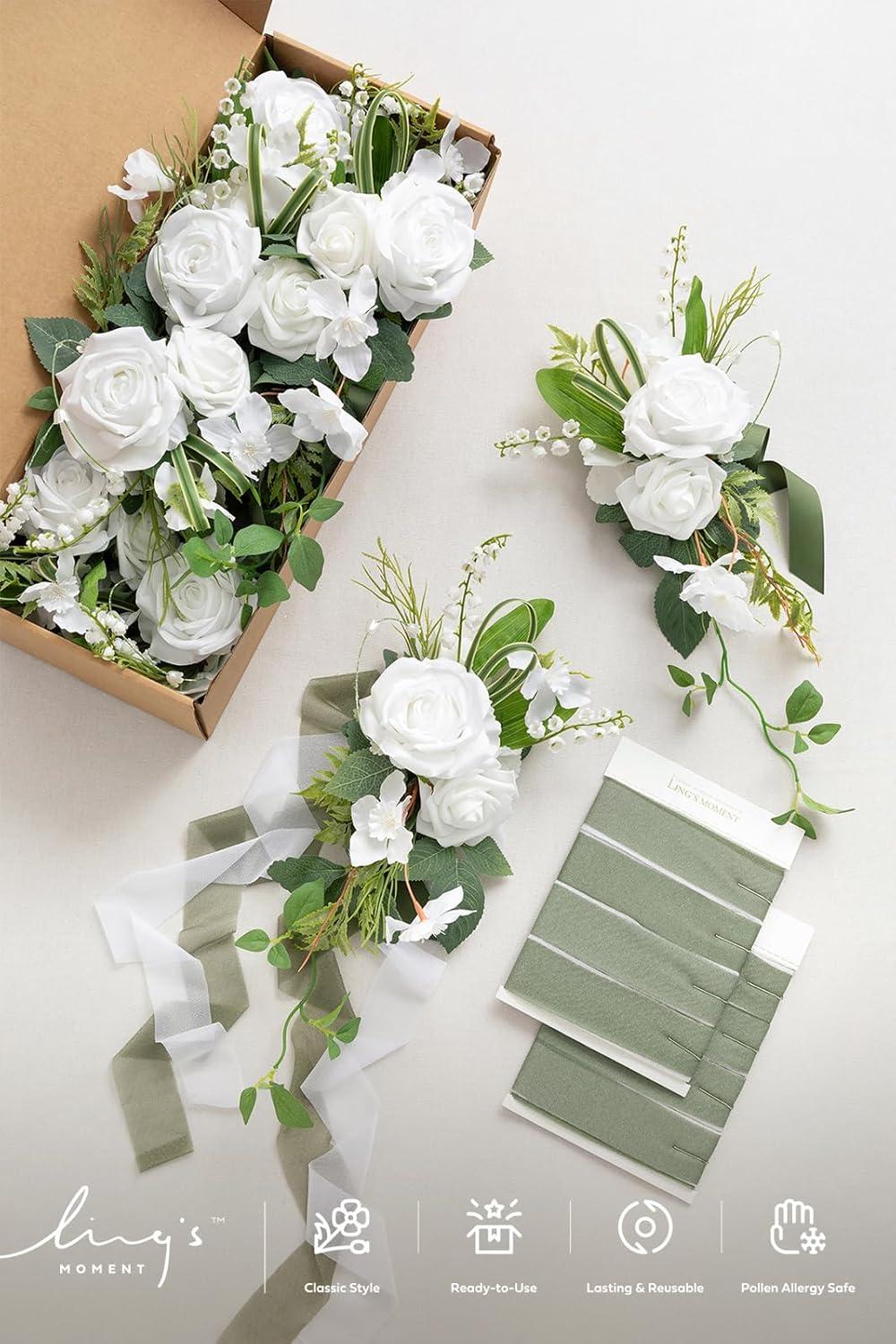 NEVER WILT: These high-quality artificial wedding flowers are made from silk and foam, with artificial greenery and other accessories, ensuring that they will never wilt. The floral decorations look beautiful and lifelike at any wedding ceremony, and can be reused to decorate stairs, windows, bathrooms, and more after wedding.