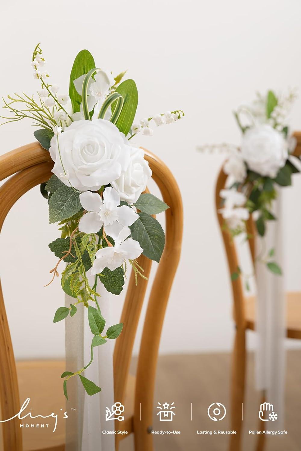 Ling’s moment 8 Wedding Artificial Aisle Pew Flowers Chair Decorations Arrangements with Chiffon Ribbons Bordeaux Red for Ceremony Reception Chair Back Floral Decor Reception Church Party Outdoor(Wht-lily White)