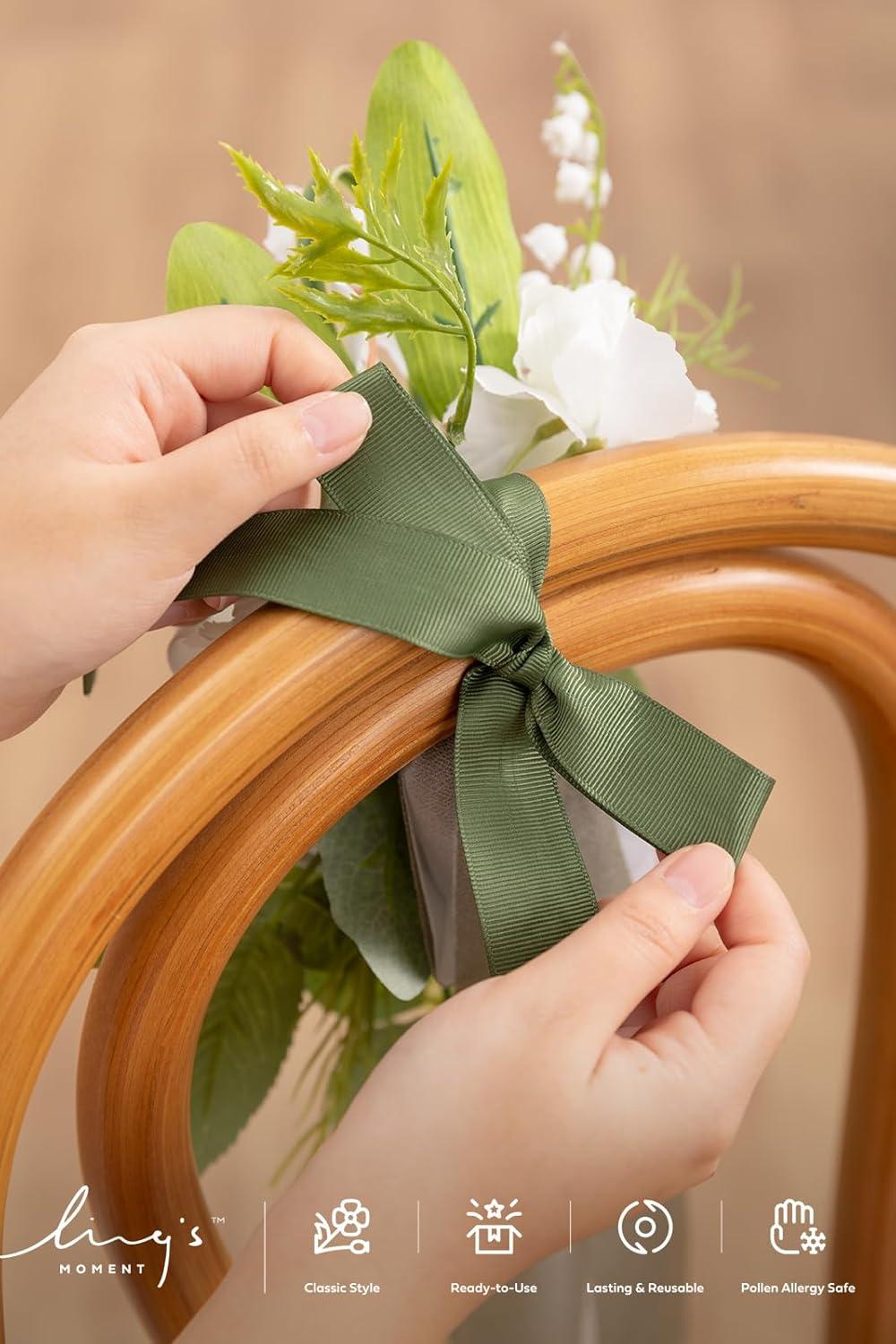 Ling’s moment 8 Wedding Artificial Aisle Pew Flowers Chair Decorations Arrangements with Chiffon Ribbons Bordeaux Red for Ceremony Reception Chair Back Floral Decor Reception Church Party Outdoor(Wht- White & Sage)