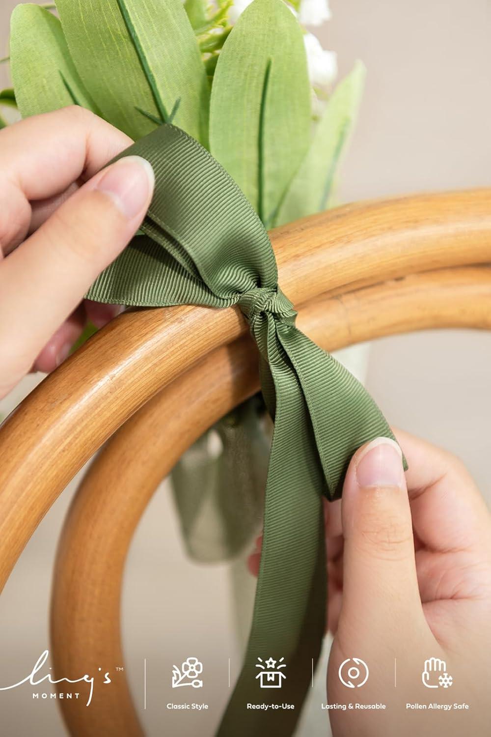 Ling’s moment 8 Wedding Artificial Aisle Pew Flowers Chair Decorations Arrangements with Chiffon Ribbons Bordeaux Red for Ceremony Reception Chair Back Floral Decor Reception Church Party Outdoor(Wht- White & Sage)