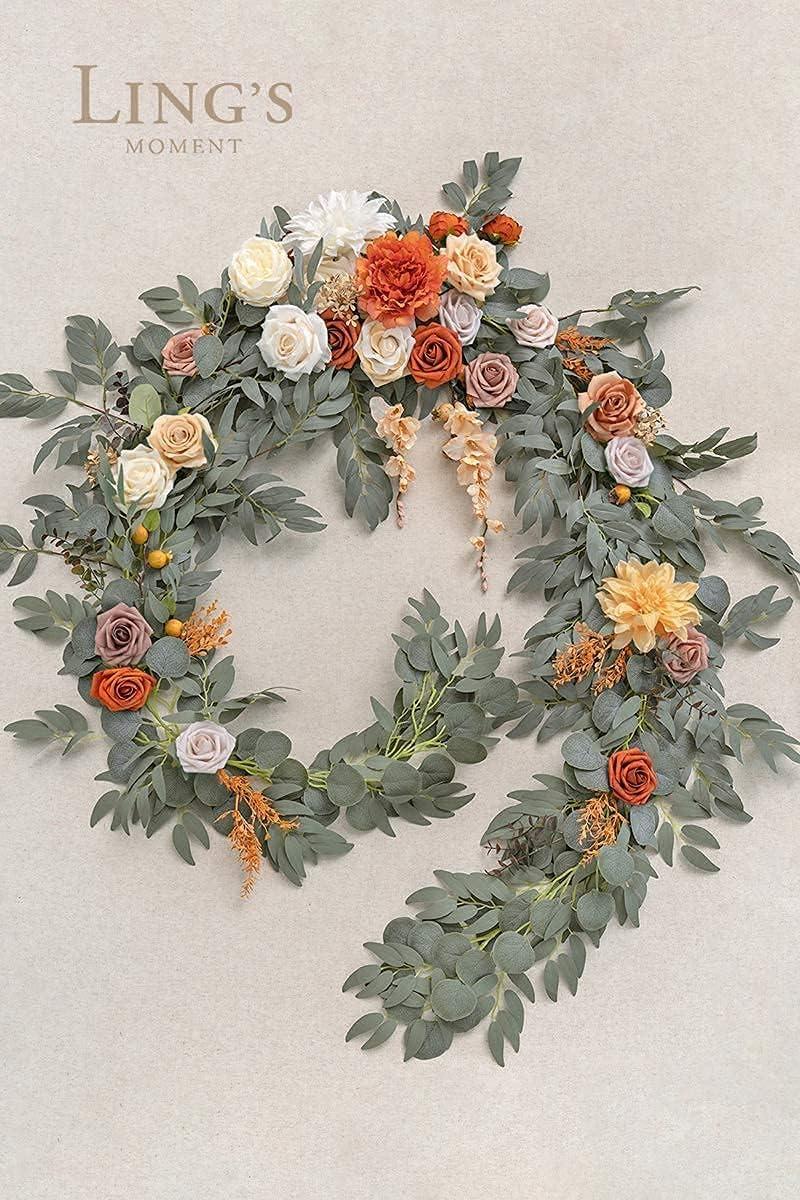 Ling’s moment 9FT Christmas Flower Garland, Handcrafted Wedding Sweetheart Table Centerpieces Head Table Decor Arch Backdrop Decorations for Wedding | Gold(Or-terracotta & Orange)