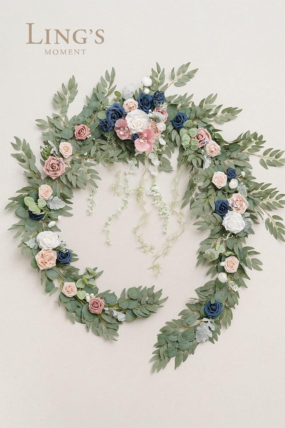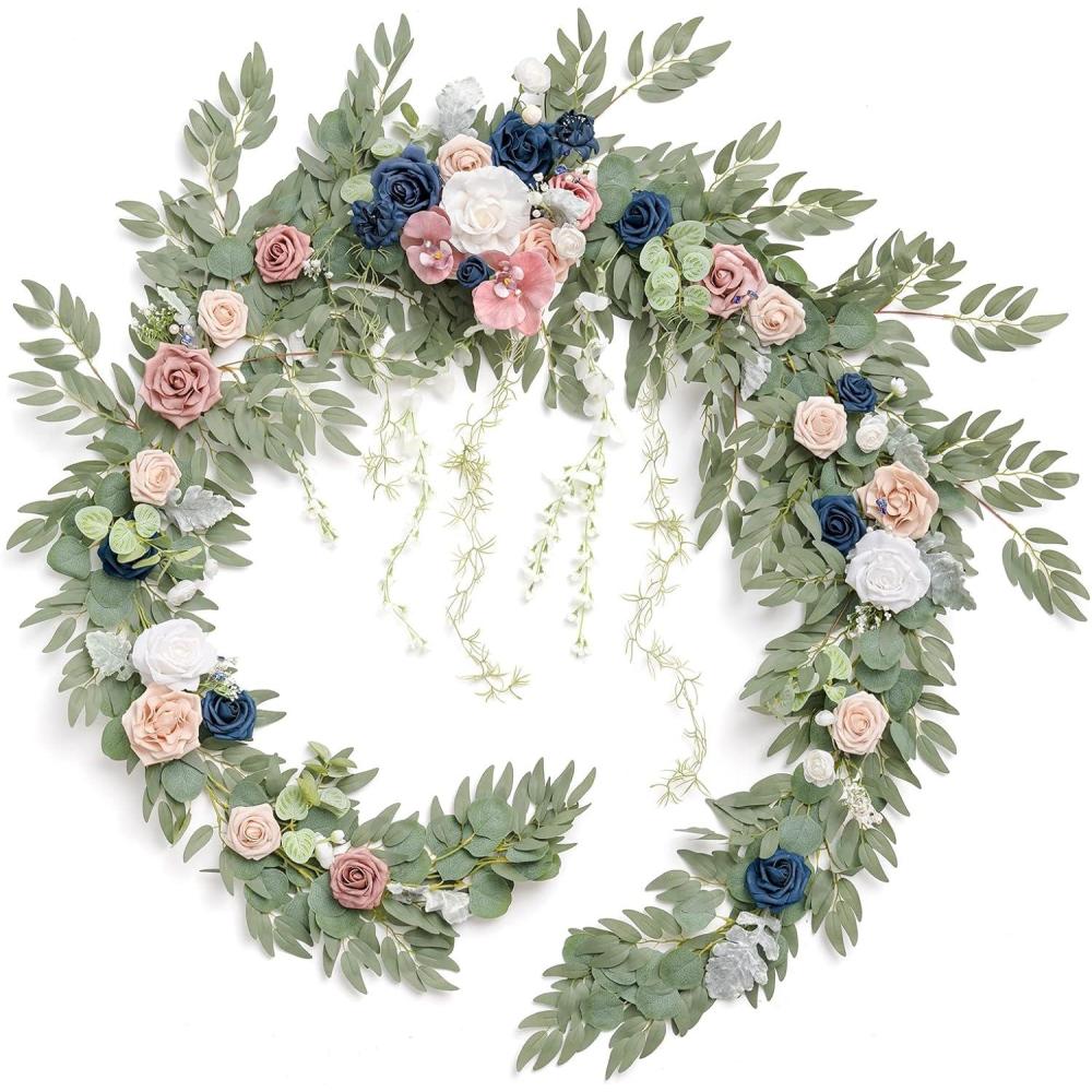 Ling's moment 9FT Christmas Flower Garland, Handcrafted Wedding Sweetheart Table Centerpieces Head Table Decor Arch Backdrop Decorations for Wedding | Gold(Pk-dusty Rose Navy)