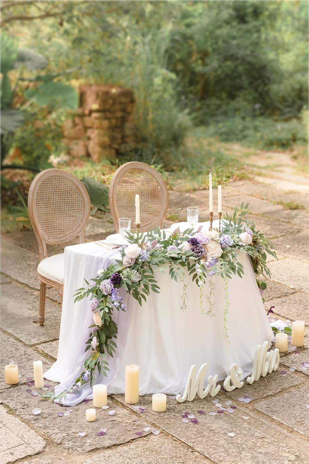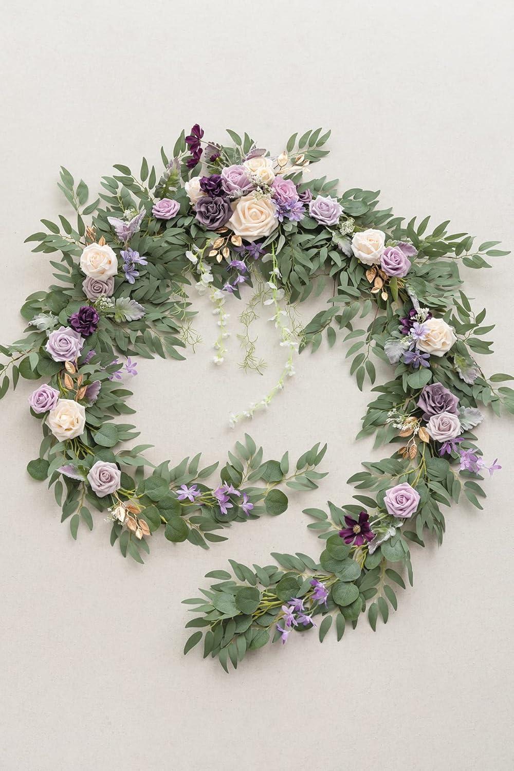Ling’s moment 9FT Christmas Flower Garland, Handcrafted Wedding Sweetheart Table Centerpieces Head Table Decor Arch Backdrop Decorations for Wedding | Gold(Prpl-lavender Purple)