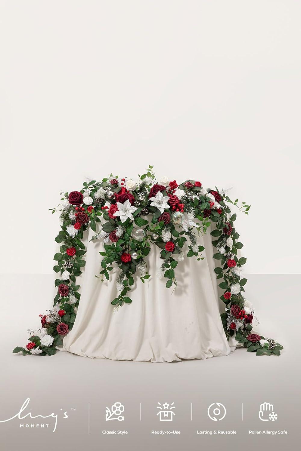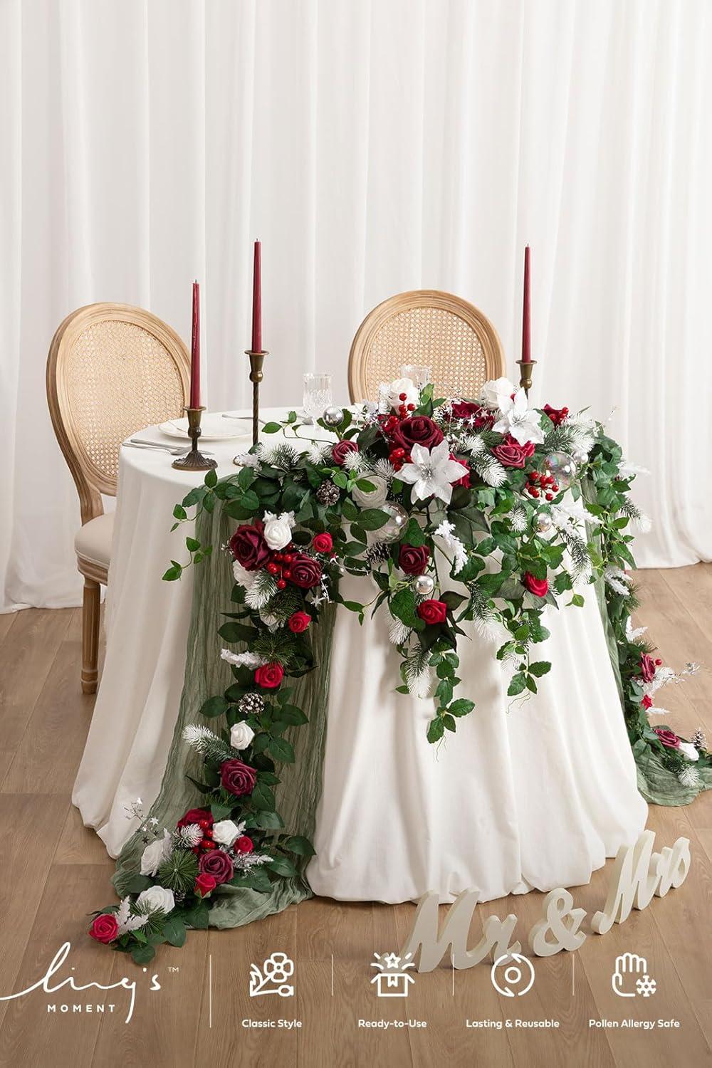 Ling’s moment 9FT Christmas Flower Garland, Handcrafted Wedding Sweetheart Table Centerpieces Head Table Decor Arch Backdrop Decorations for Wedding | Gold(Red-christmas)