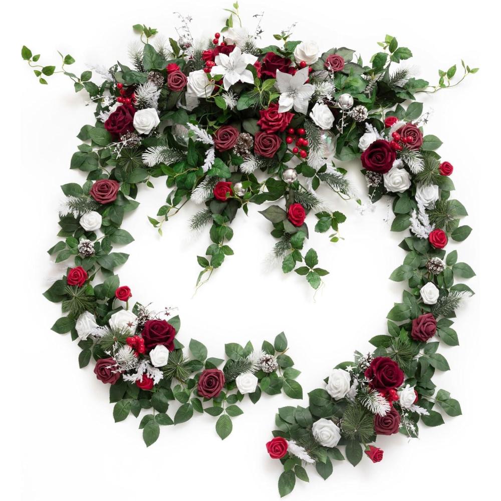 imageLings moment 9FT Christmas Flower Garland Handcrafted Wedding Sweetheart Table Centerpieces Head Table Decor Arch Backdrop Decorations for Wedding  GoldRedchristmas