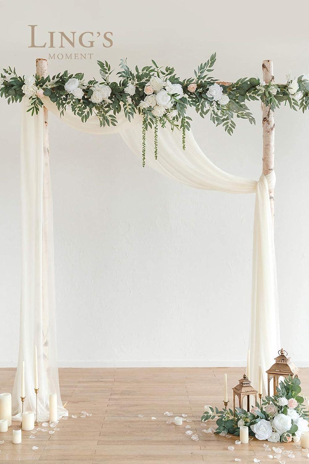 Ling’s moment 9FT Christmas Flower Garland, Handcrafted Wedding Sweetheart Table Centerpieces Head Table Decor Arch Backdrop Decorations for Wedding | Gold(Wht-white & Beige)