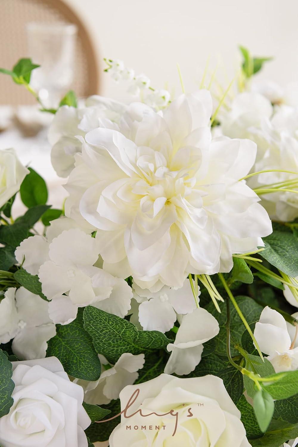 Ling's moment 9FT Eucalyptus and Willow Leaf Garland with White Flower, Handcrafted Wedding Sweetheart Table Centerpieces Head Table Decor Arch Backdrop Decorations for Wedding | Red & White(Wht-white & Lily & Olive)