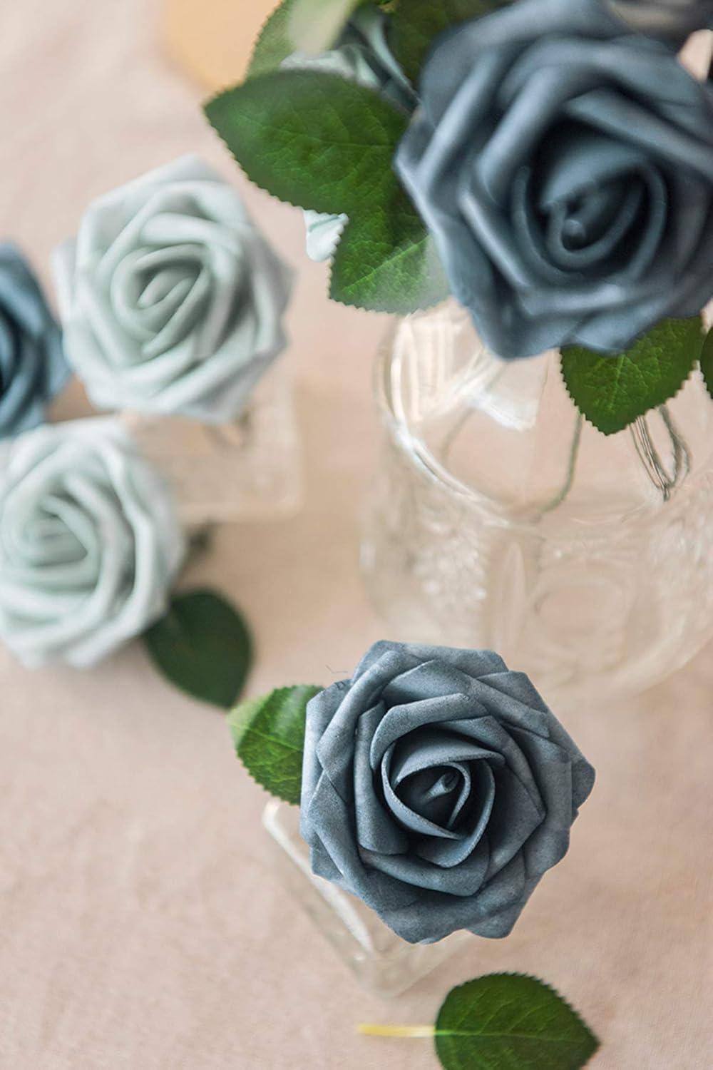 Ling’s Moment Artificial Flowers 25Pcs Mauve Plum Roses Decor w/Stems,3″ Real Touch DIY Foam Floral for Wedding Bouquet/Centerpieces, Outdoors Party Backdrop, Room/Table, and Garden/Pot Decorations(Blu- Dusty Blue)