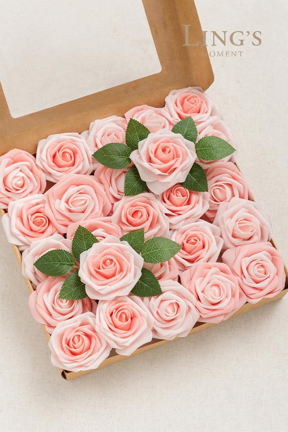 Ling’s Moment Artificial Flowers 25Pcs Mauve Plum Roses Decor w/Stems,3″ Real Touch DIY Foam Floral for Wedding Bouquet/Centerpieces, Outdoors Party Backdrop, Room/Table, and Garden/Pot Decorations(Pk- Shabby Blush)