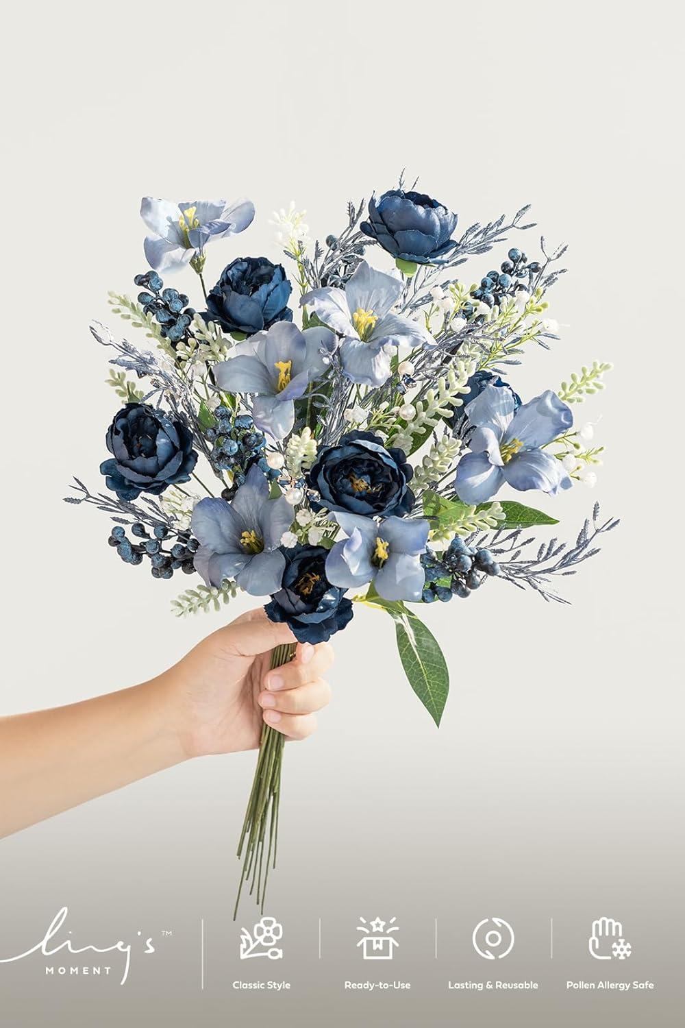 Ling’s moment Artificial Greenery Stems Box Set, 48pcs with 7 Kinds of Faux Greenery Picks for DIY Bridal Bouquets Wedding Floral Arrangement Table Centerpieces, Tawny Beige & Sand Beige(Blu-navy & Cream)