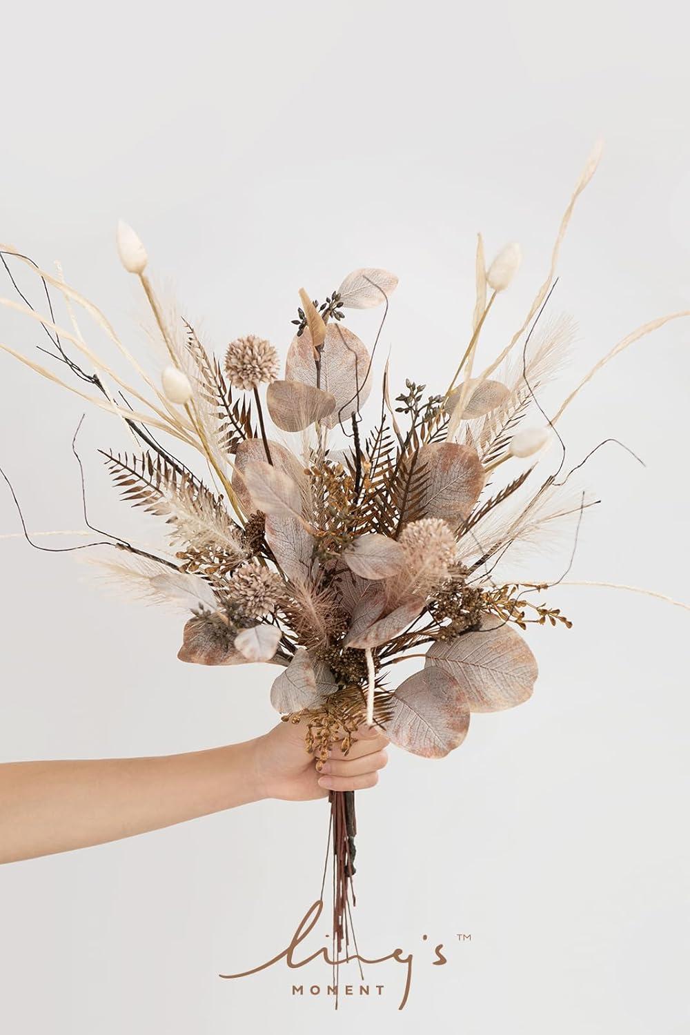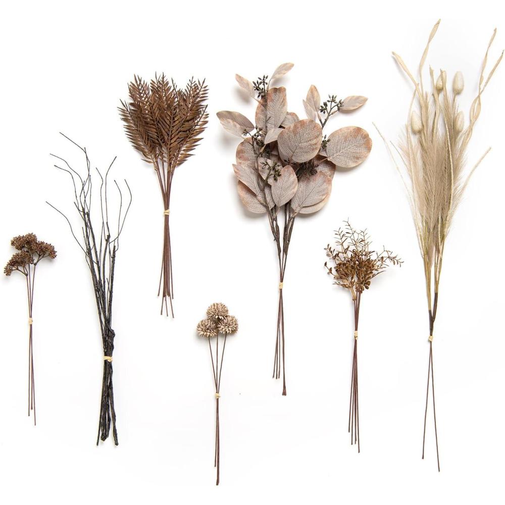 imageLings moment Artificial Greenery Stems Box Set 48pcs with 7 Kinds of Faux Greenery Picks for DIY Bridal Bouquets Wedding Floral Arrangement Table Centerpieces Tawny Beige ampamp Sand BeigeBlutransparent Accessories