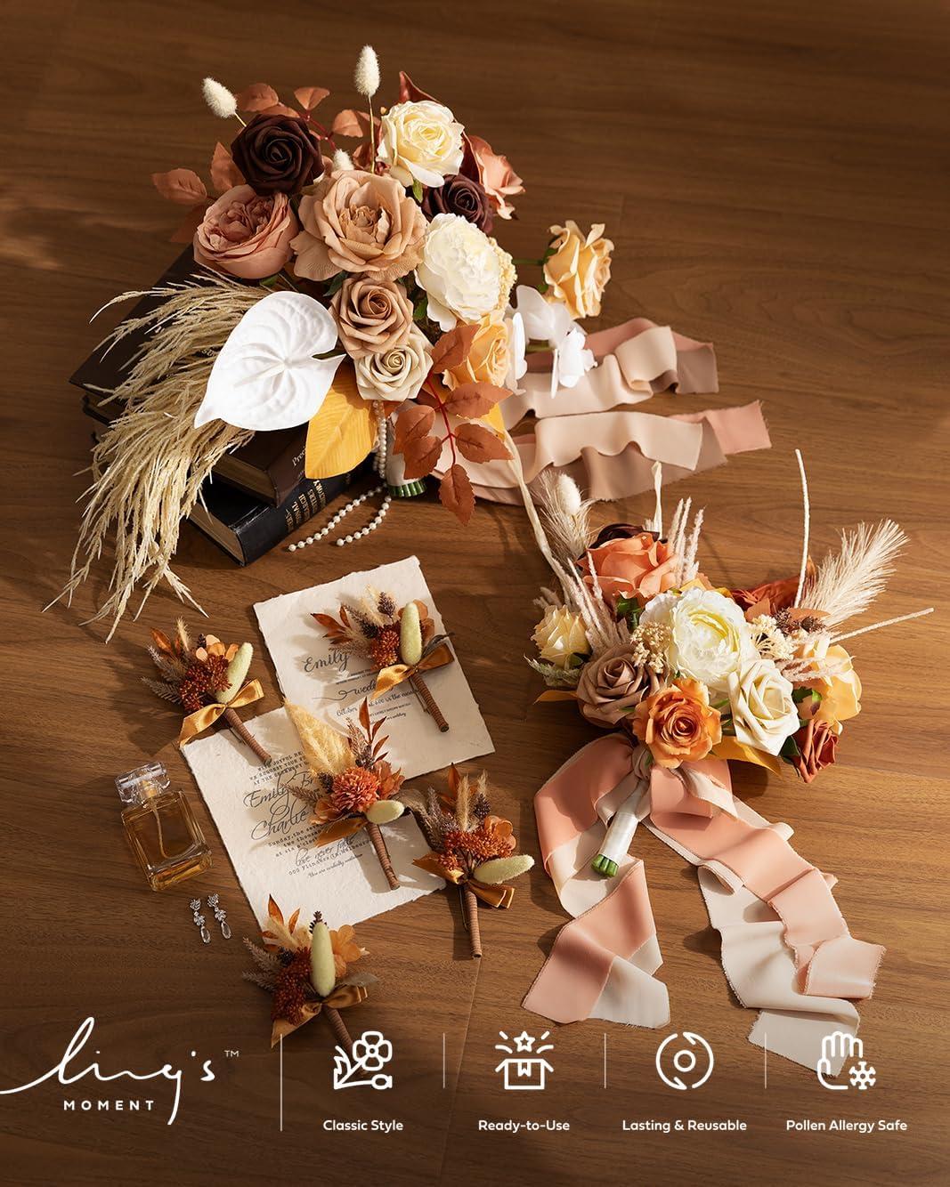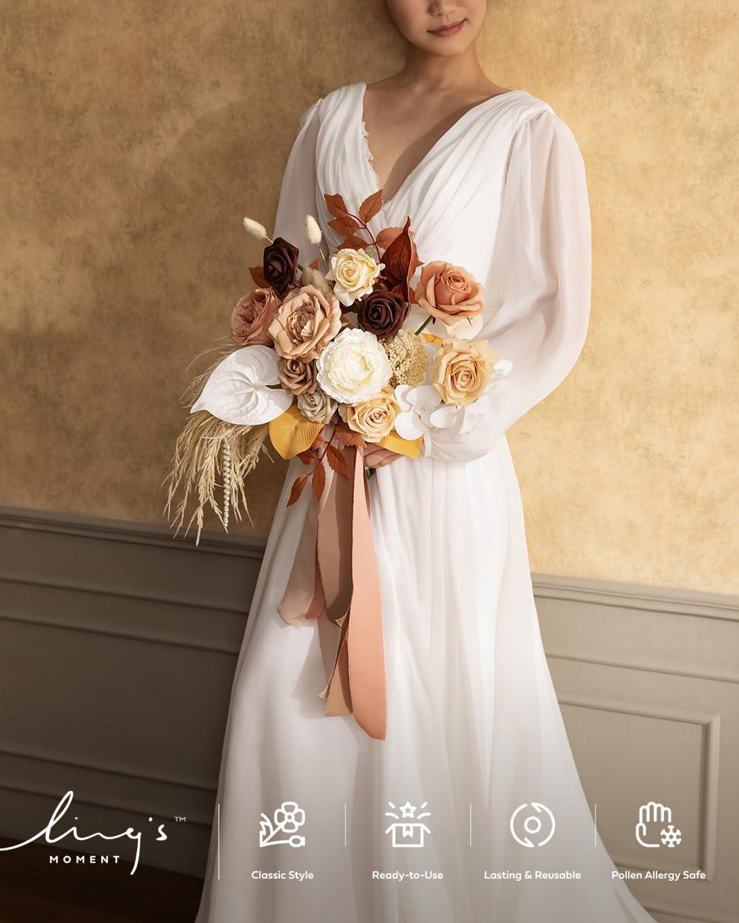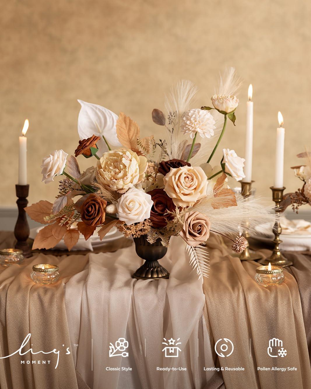 Realistic Look: Tawny beige and sand beige reflect late autumn skies with a muted, tender glow. Dried branches add depth and organic texture, balancing softness and strength. Ideal for rustic barn weddings, vineyard ceremonies, and romantic outdoor receptions.