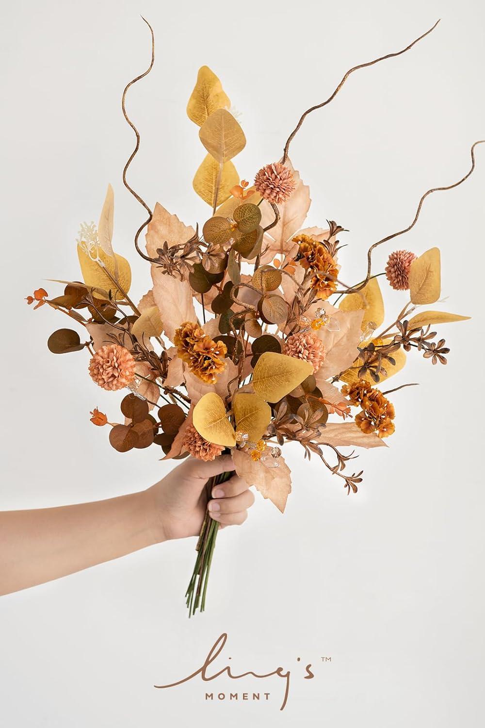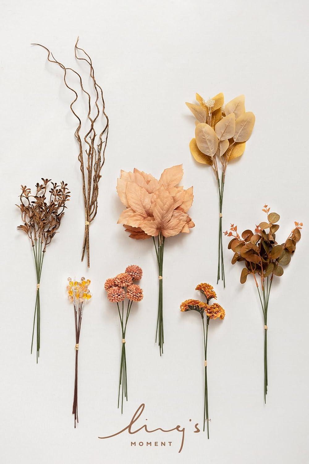 Ling’s moment Artificial Greenery Stems Box Set, 48pcs with 7 Kinds of Faux Greenery Picks for DIY Bridal Bouquets Wedding Floral Arrangement Table Centerpieces, Tawny Beige & Sand Beige(Brn-brown & Orange)