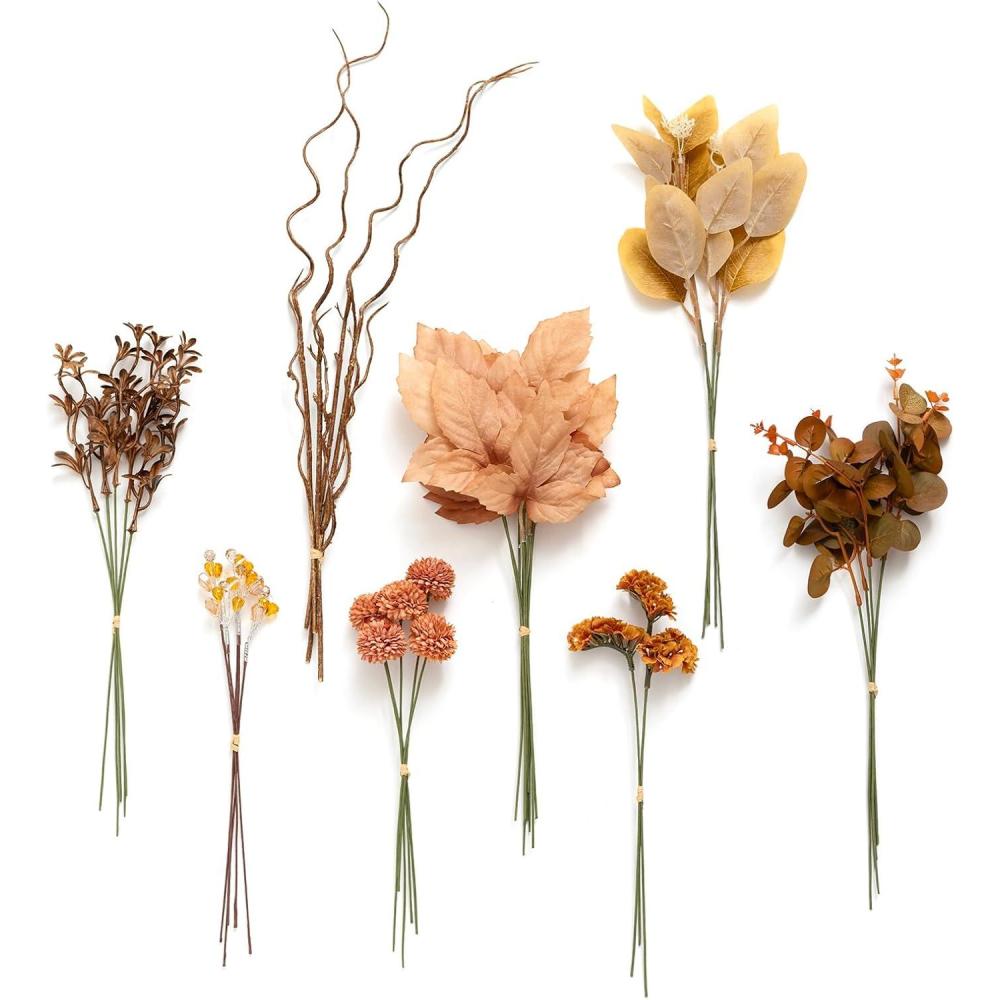 What You Get: Silk/Foam flowers: Chrysanthemum x5, Phalaenopsis Orchid x5, Brown Flower x15. – Greenery: Berry x5, Branch x3, Withered Vine x3, White Leaf x12.