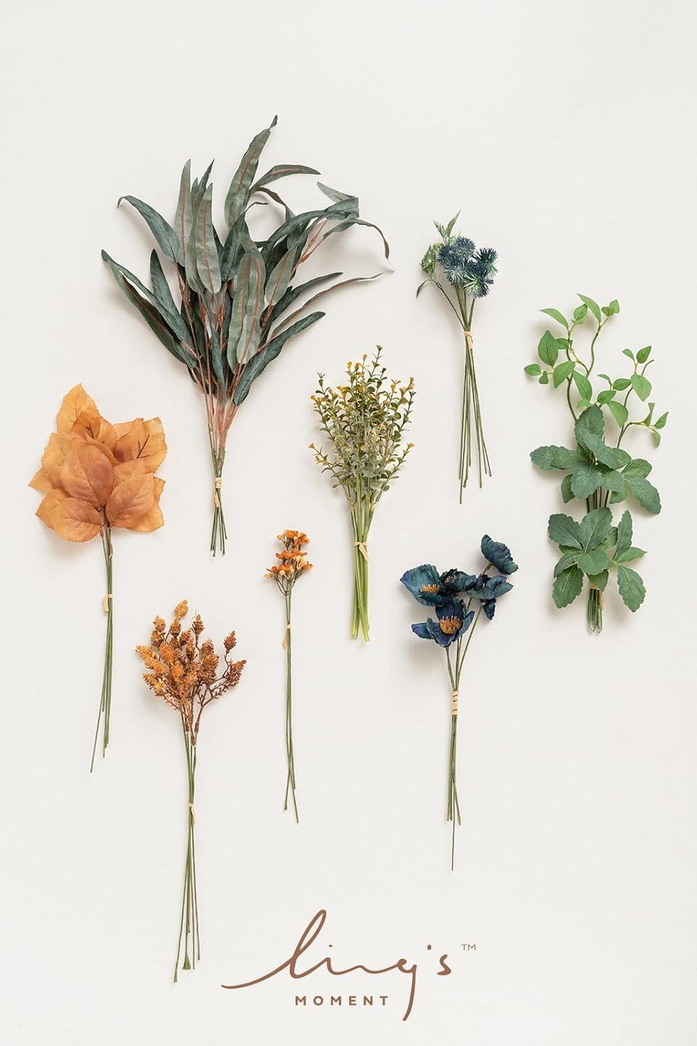 imageLings moment Artificial Greenery Stems Box Set 48pcs with 7 Kinds of Faux Greenery Picks for DIY Bridal Bouquets Wedding Floral Arrangement Table Centerpieces Tawny Beige ampamp Sand BeigeOrteal  Burnt Orange