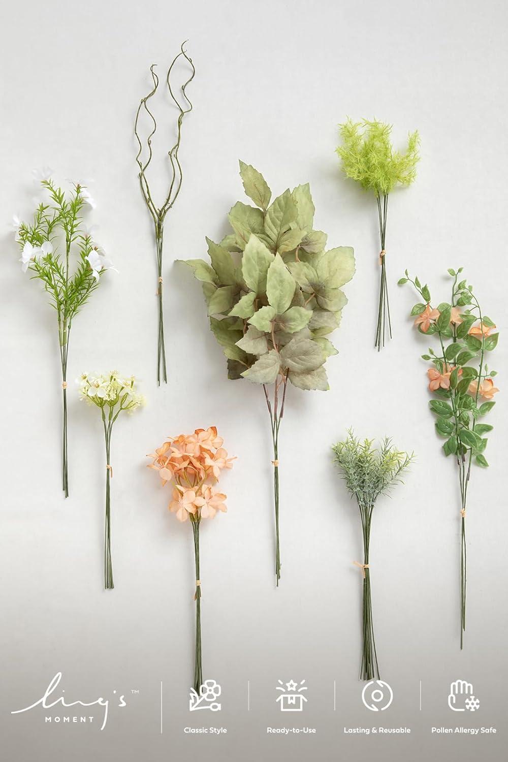 Ling’s moment Artificial Greenery Stems Box Set, 48pcs with 7 Kinds of Faux Greenery Picks for DIY Bridal Bouquets Wedding Floral Arrangement Table Centerpieces, Tawny Beige & Sand Beige(Or-terracotta & Green)