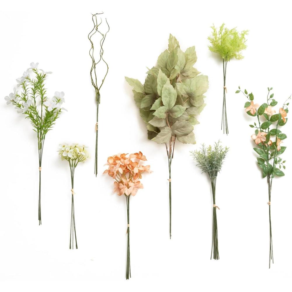 imageLings moment Artificial Greenery Stems Box Set 48pcs with 7 Kinds of Faux Greenery Picks for DIY Bridal Bouquets Wedding Floral Arrangement Table Centerpieces Tawny Beige ampamp Sand BeigeOrterracotta  Green