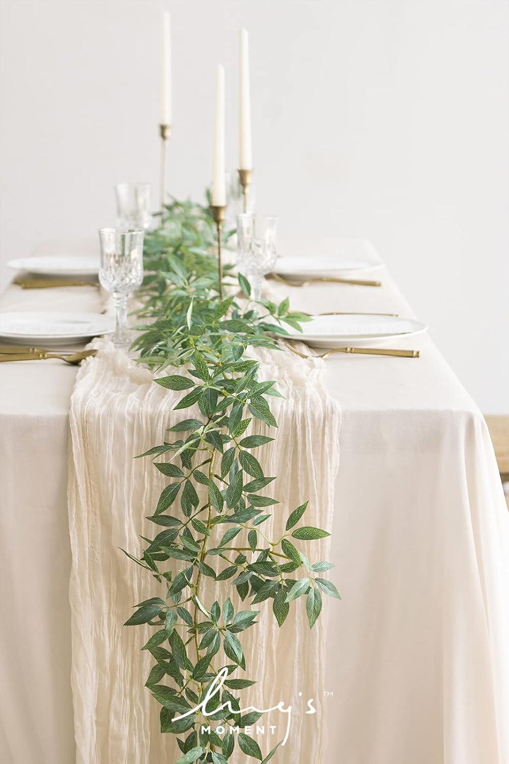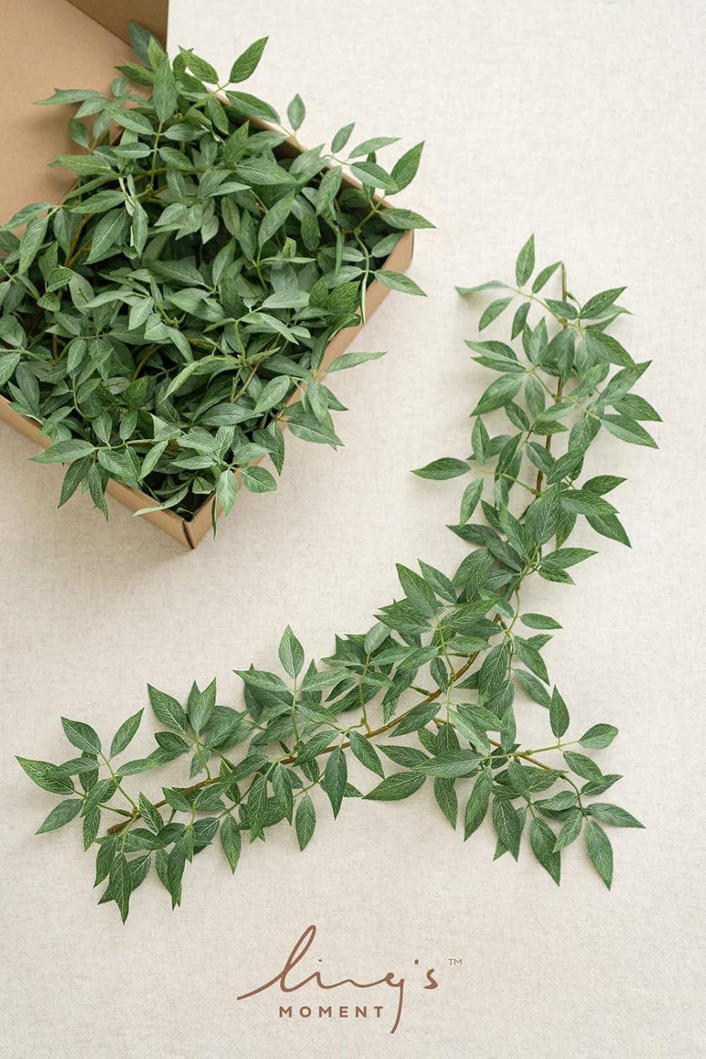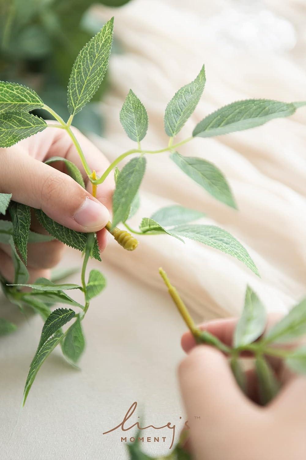 DIY Friendly: Ling's artificial garland & vines are pre-made ready to decorate straight out of the kraft box. Leaves-silk fabric, Stems-plastic, Polyester and wire. Fully-wired stem and bendable durable,easy to bend or trim with wire cutters. Fit all style preferences and space. Ideal for both beginners and professional designers.