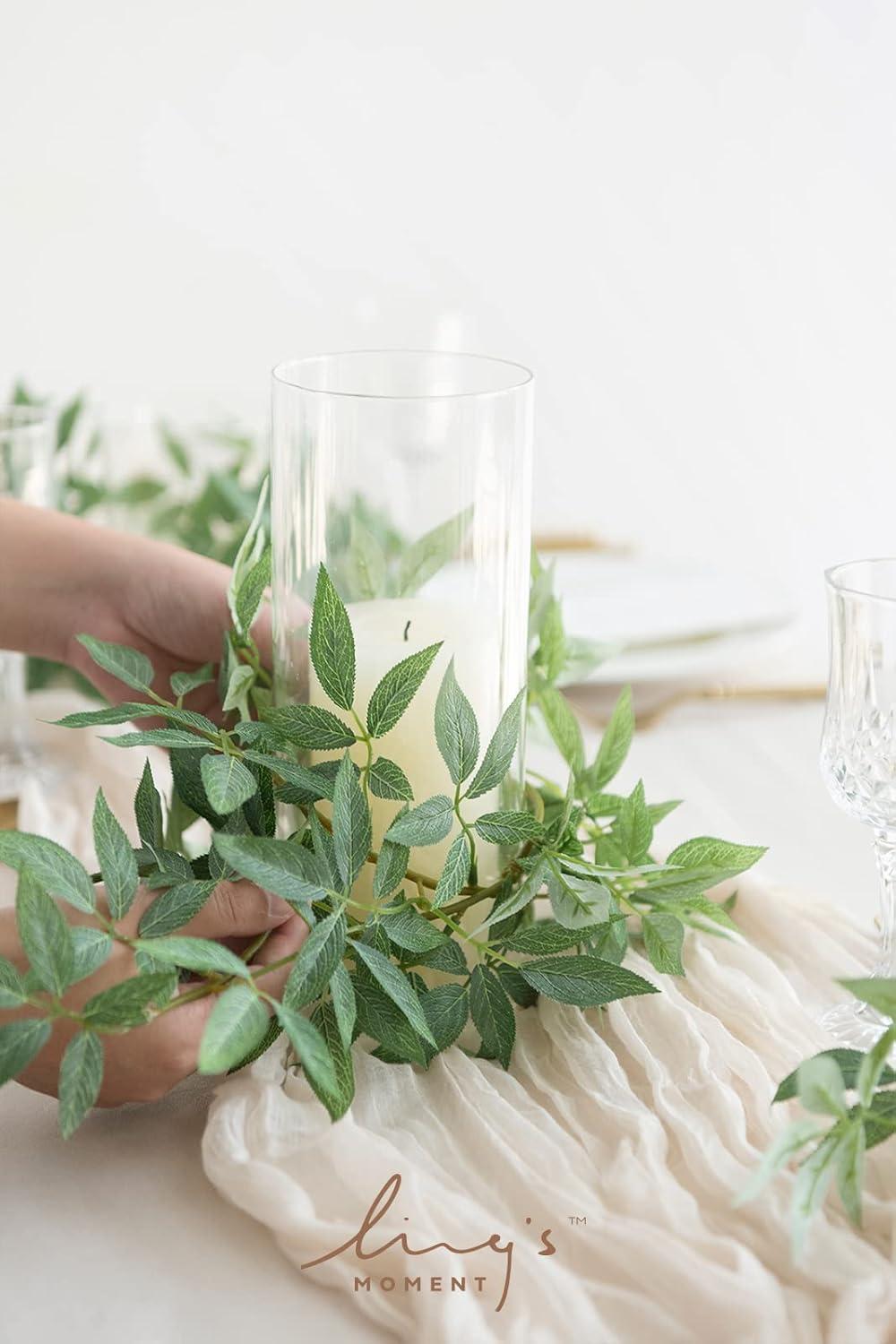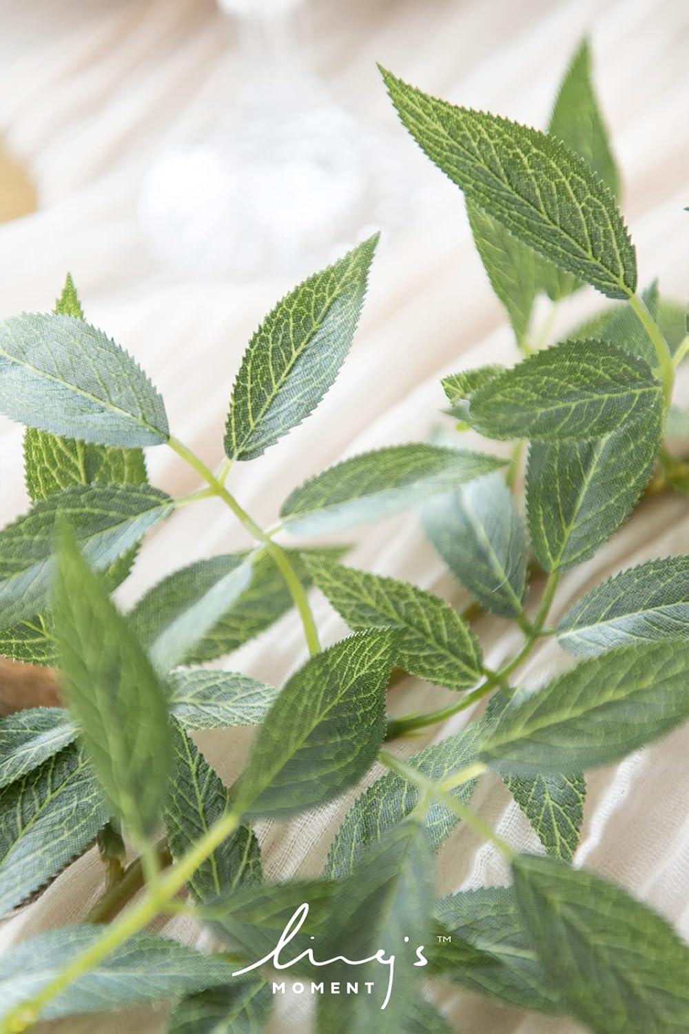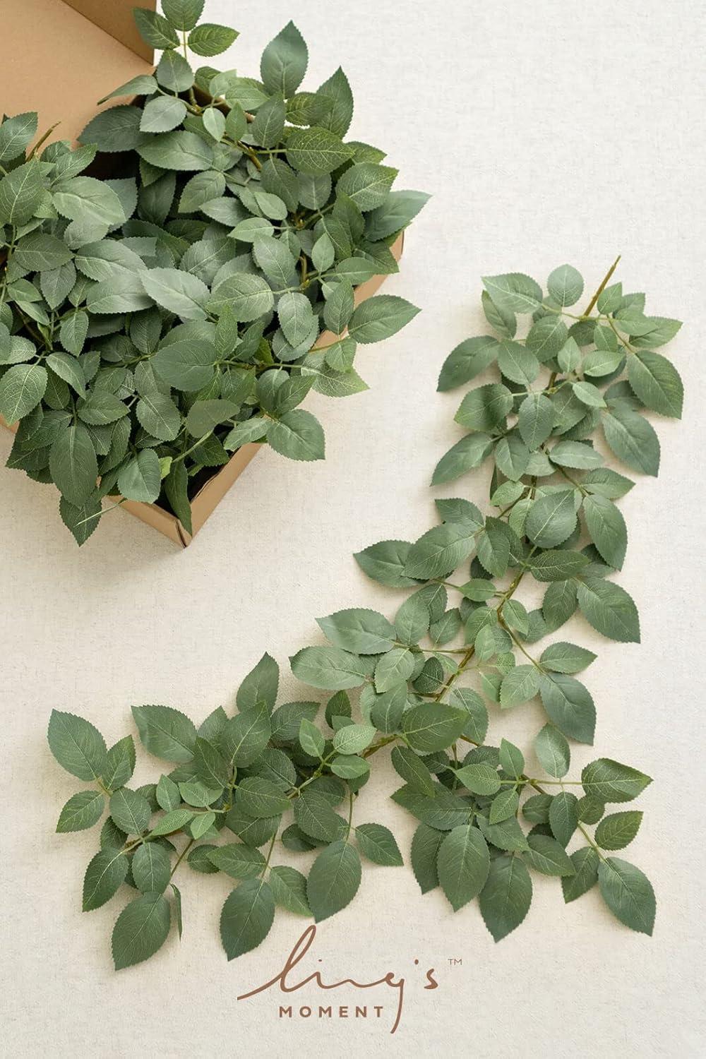 Ling’s Moment Artificial Hanging Rose Leaf Garland 13.78ft Detachable Lanterns Vines Decoration, Realistic Texture Wedding Short Wreath Greenery Filler for DIY Floral Arrangement Table Centerpieces(Basic Green)