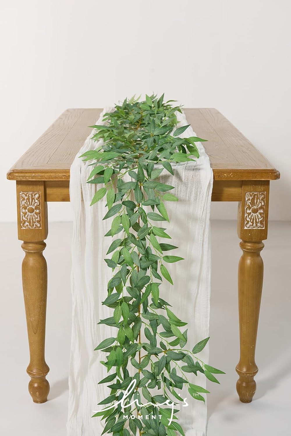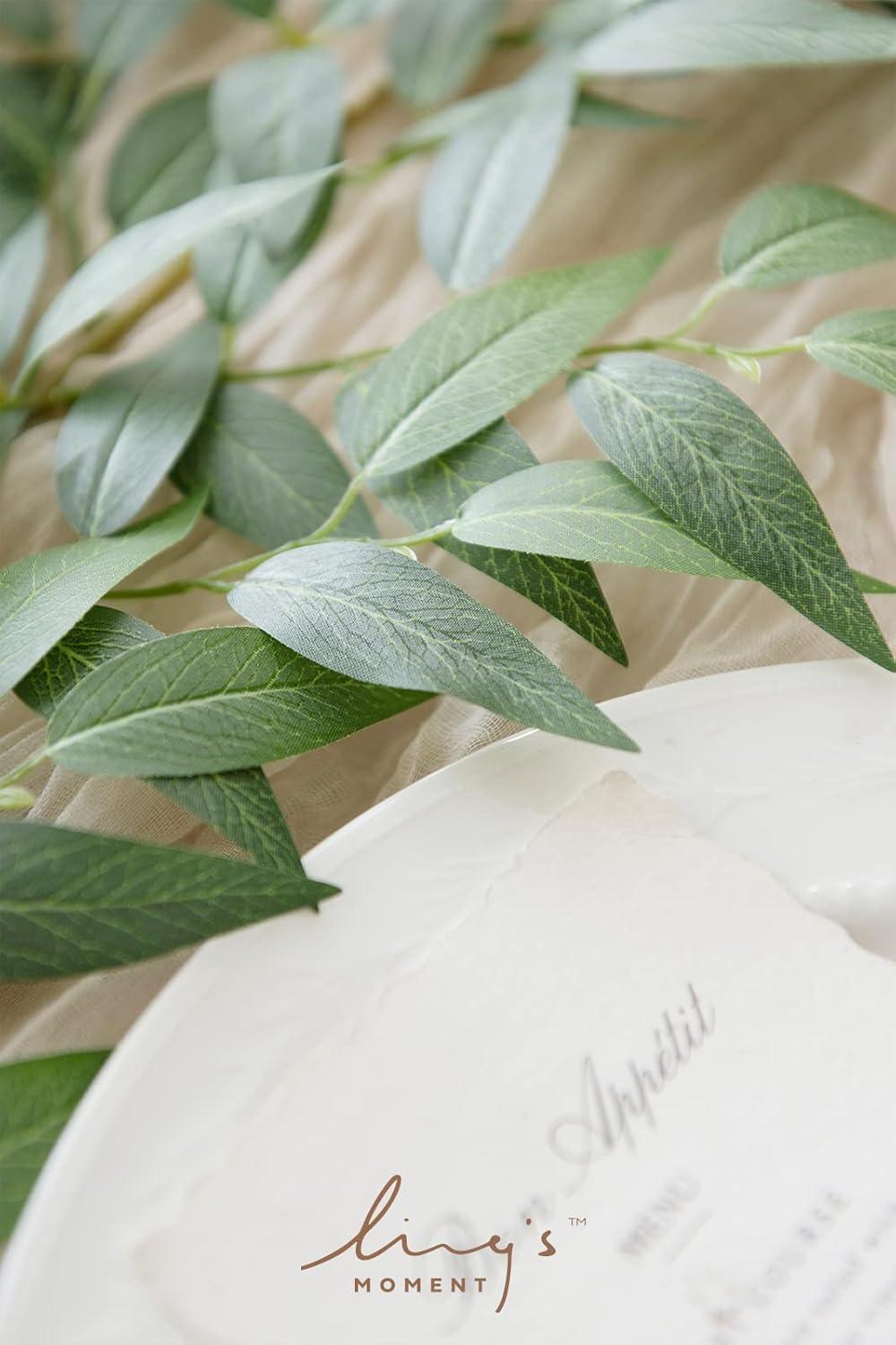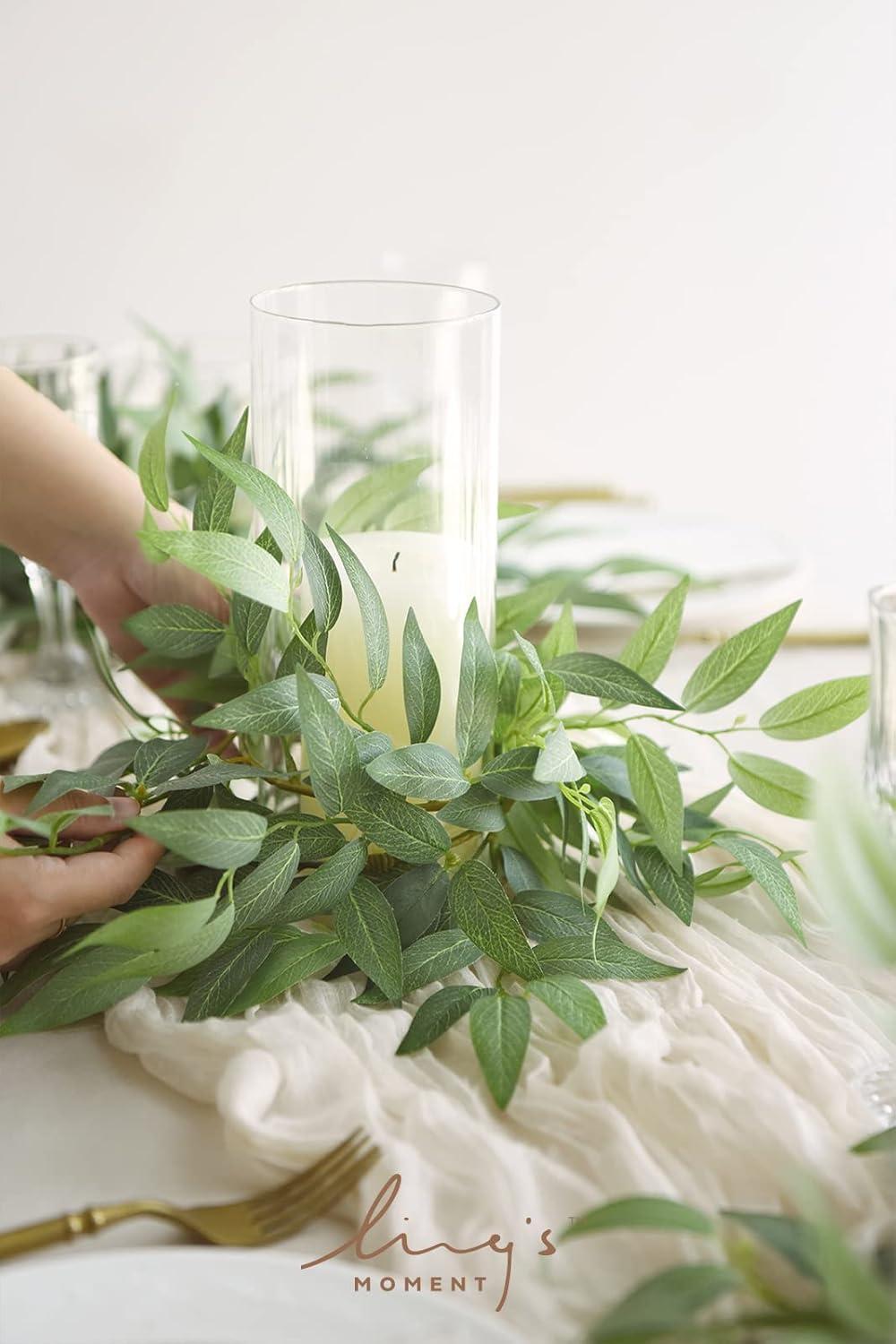 Ling’s Moment Artificial Hanging Rose Leaf Garland 13.78ft Detachable Lanterns Vines Decoration, Realistic Texture Wedding Short Wreath Greenery Filler for DIY Floral Arrangement Table Centerpieces(Basic Green)