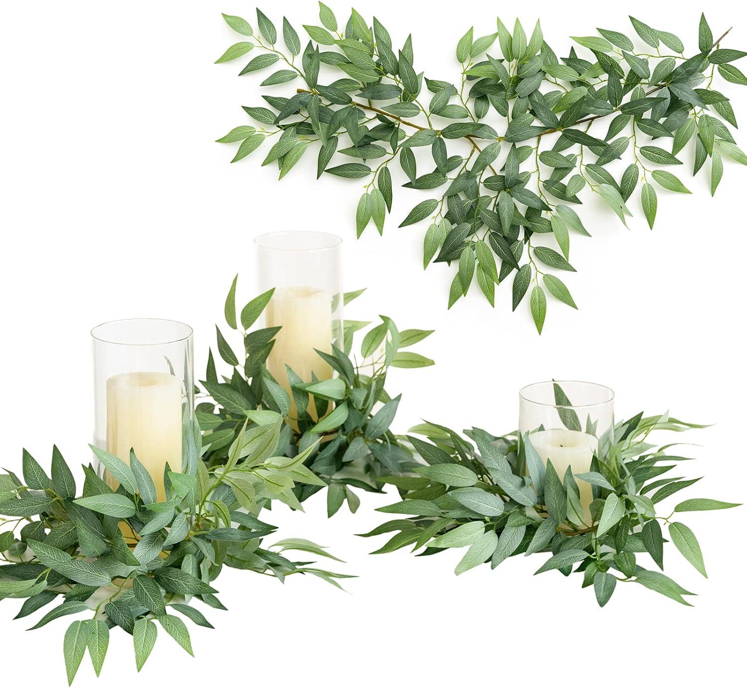 Ling's Moment Artificial Hanging Rose Leaf Garland 13.78ft Detachable Lanterns Vines Decoration, Realistic Texture Wedding Short Wreath Greenery Filler for DIY Floral Arrangement Table Centerpieces(Basic Green)