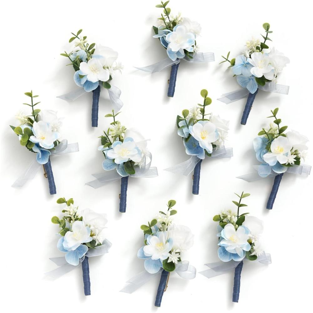 imageLings moment Boutonniere for Men 10pcs Groomsmen Guest Boutonniere Artificial Flowers for Wedding DcorPromHomecomingetcBlack Baccara BurgundyBlublue