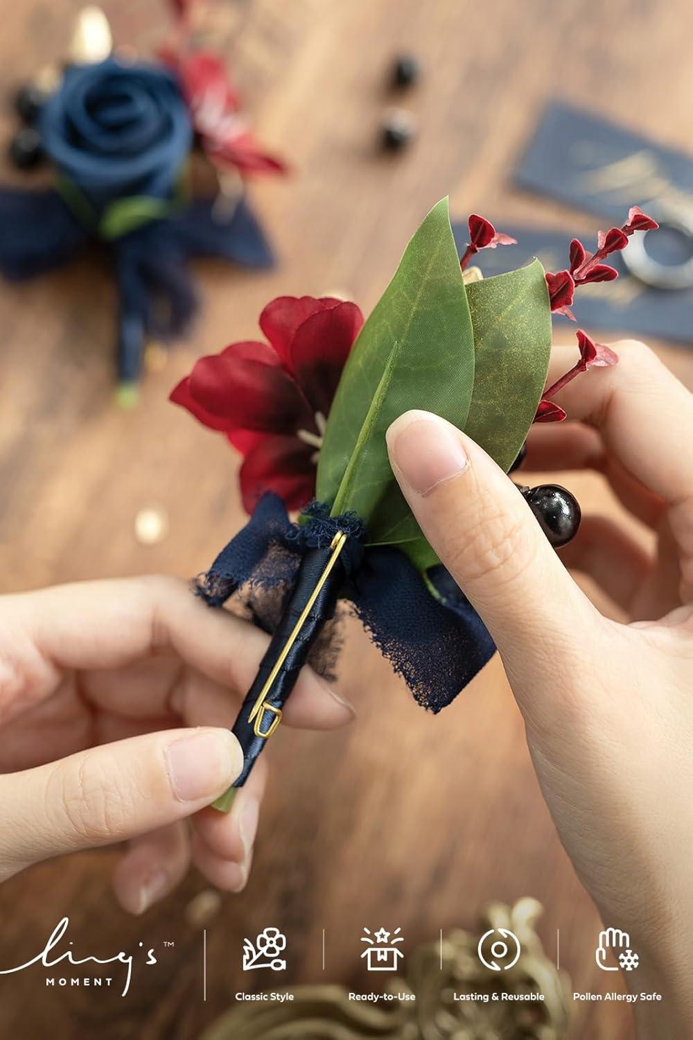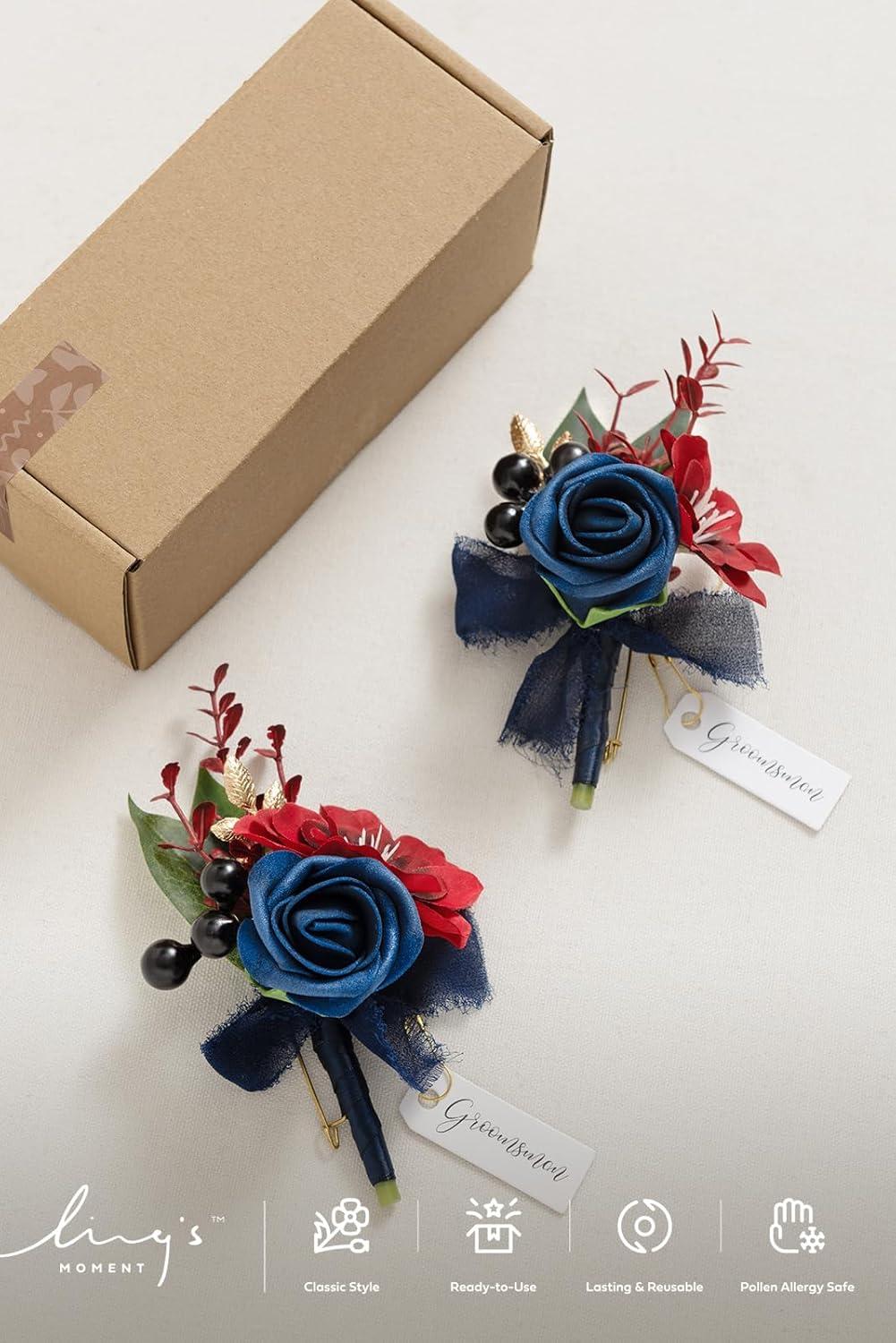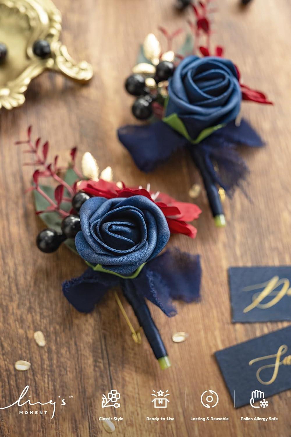 Ling's moment Boutonniere for Men, 2pcs Groom Groomsmen Guest Boutonniere, Artificial Flowers for Wedding/Prom/Homecoming, etc.Burnt Orange Terracotta(Blu-navy Blue & Burgundy)