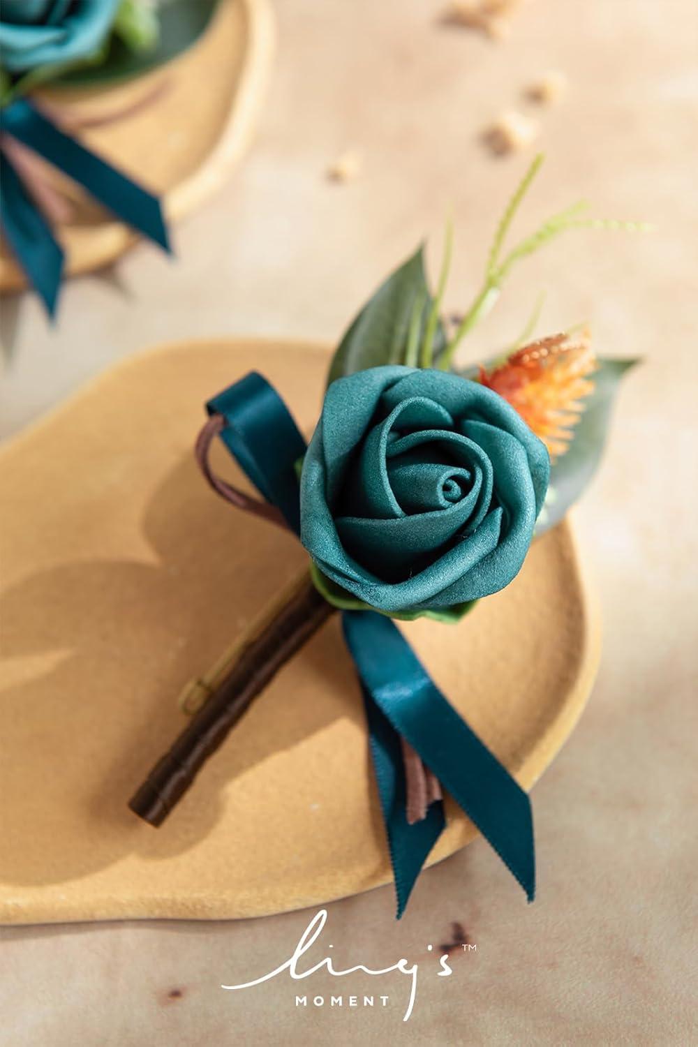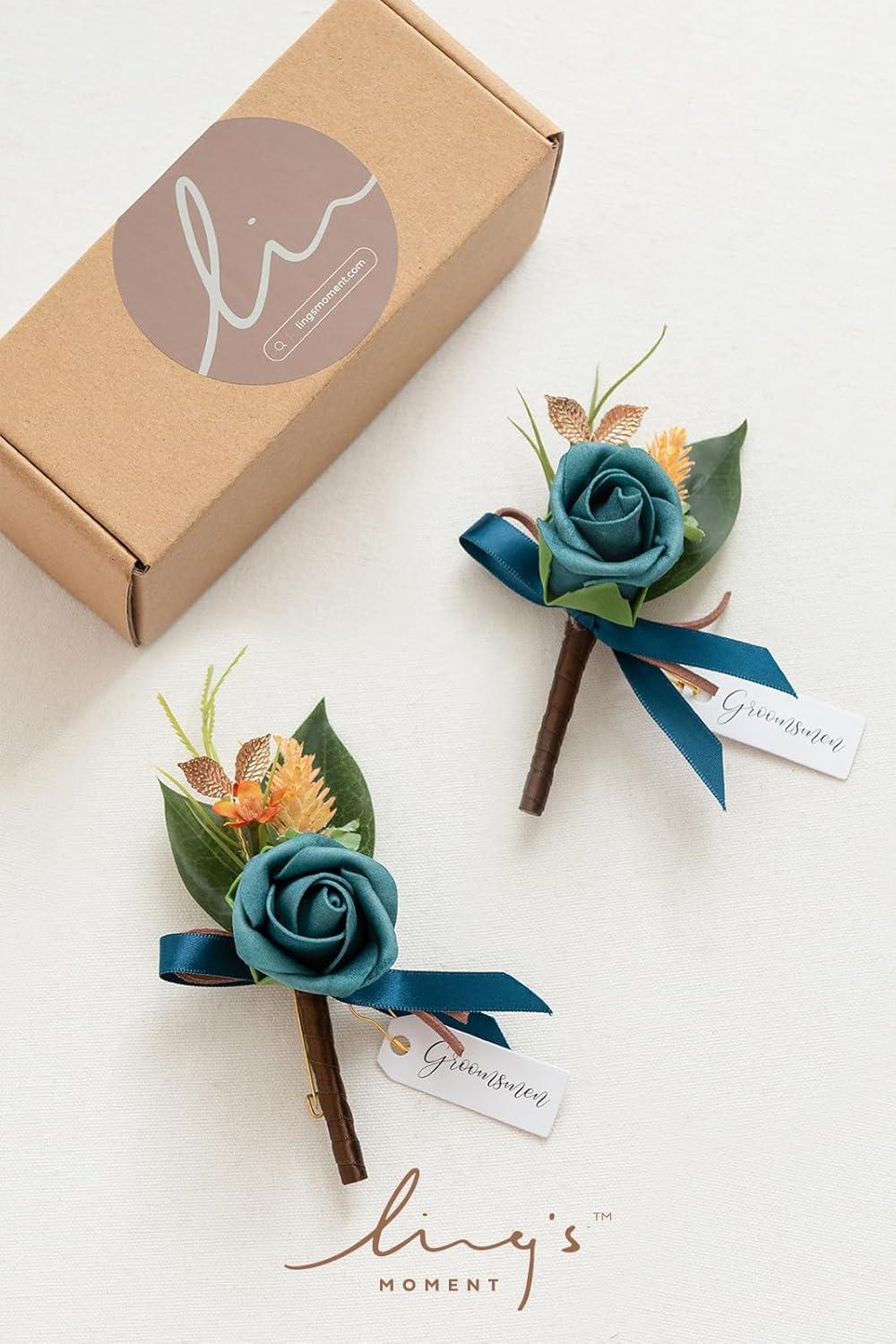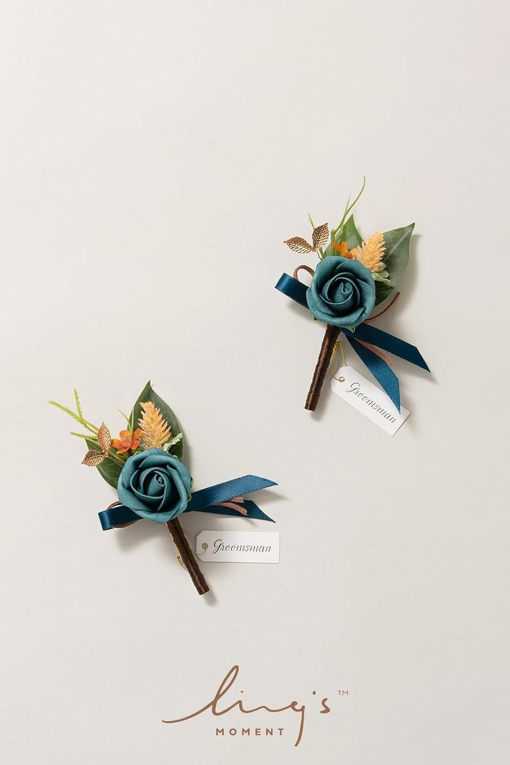 Ling’s moment Boutonniere for Men, 2pcs Groom Groomsmen Guest Boutonniere, Artificial Flowers for Wedding/Prom/Homecoming, etc.Burnt Orange Terracotta(Or-dark Teal & Burnt Orange)