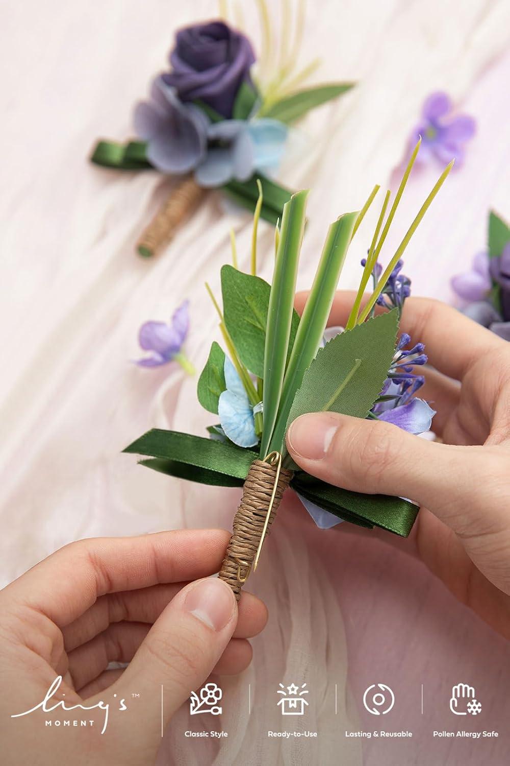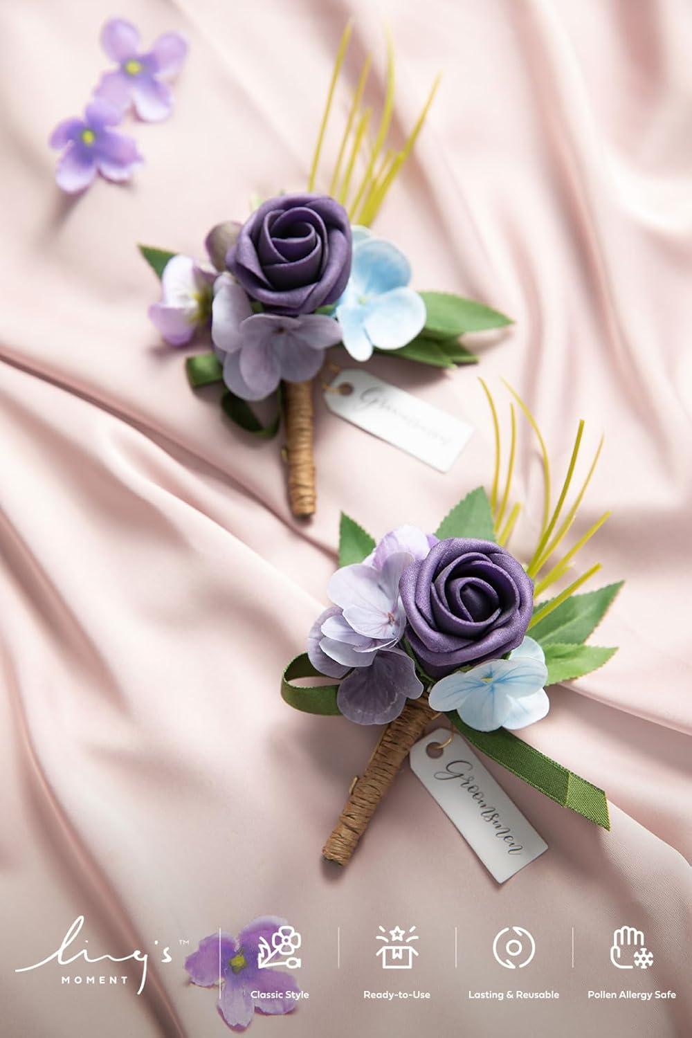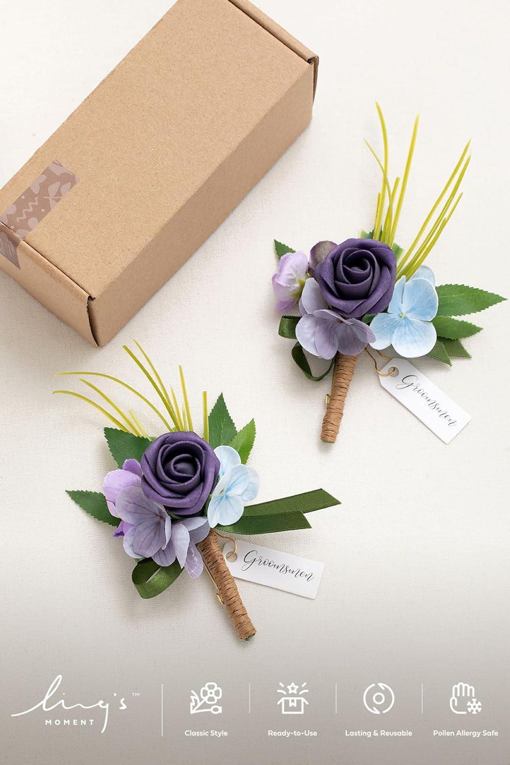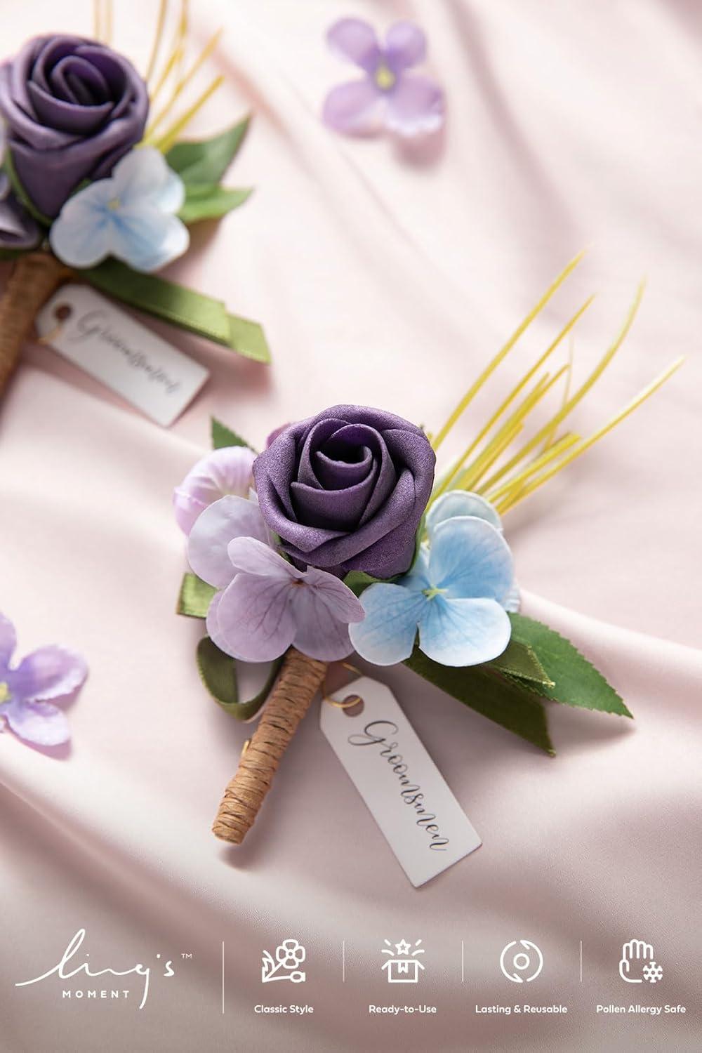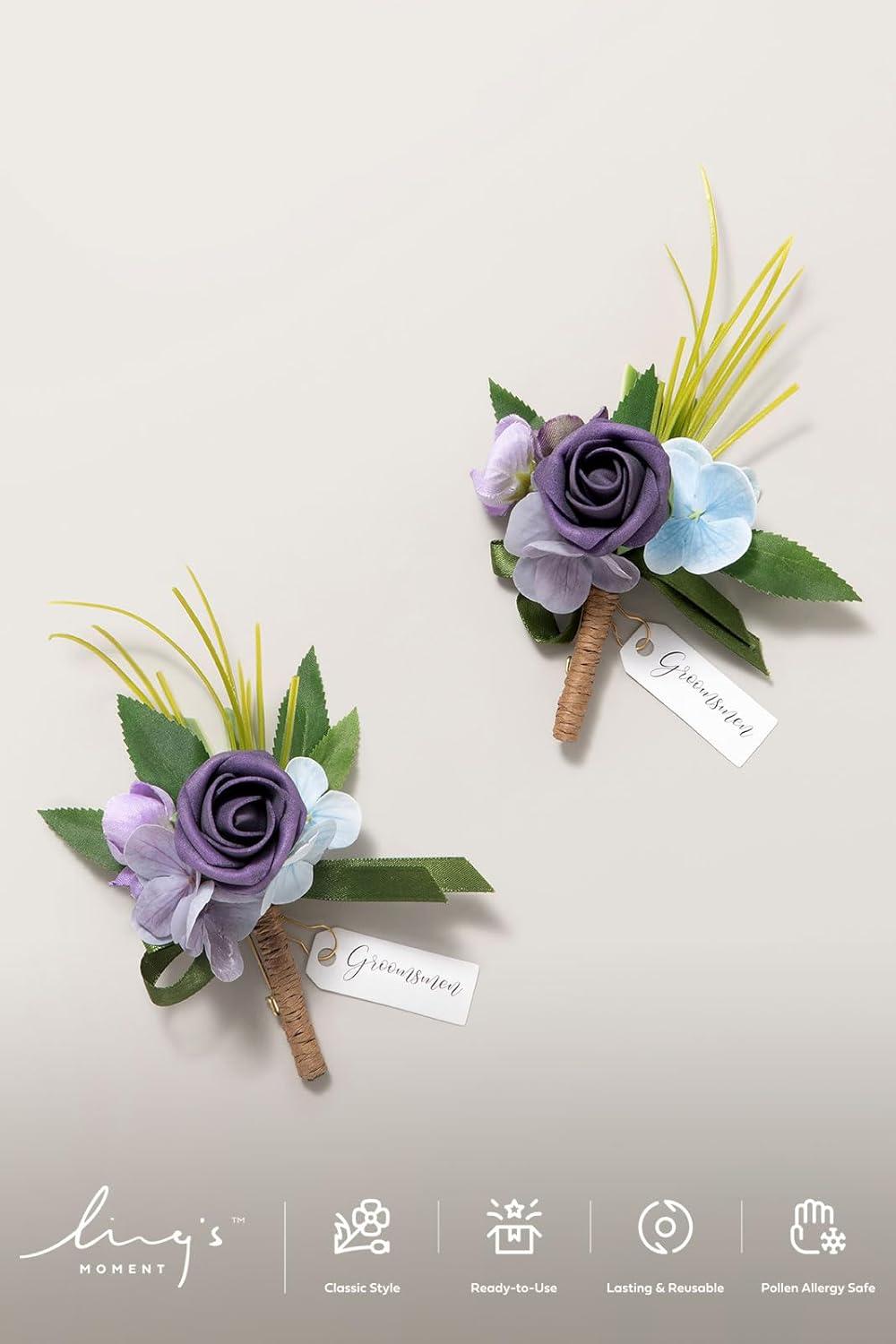 Ling’s moment Boutonniere for Men, 2pcs Groom Groomsmen Guest Boutonniere, Artificial Flowers for Wedding/Prom/Homecoming, etc.Burnt Orange Terracotta(Prpl-lilac Lavender & Purple)