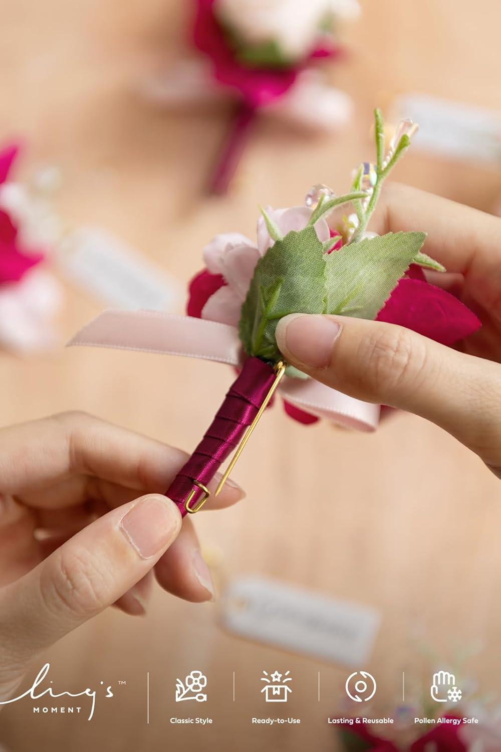 Ling’s moment Boutonniere for Men, 6pcs Groom Groomsmen Boutonniere, Artificial Flowers for Wedding Decor/Prom/Homecoming, etc.Sand Beige White(Pk-blush & Hot Pink)