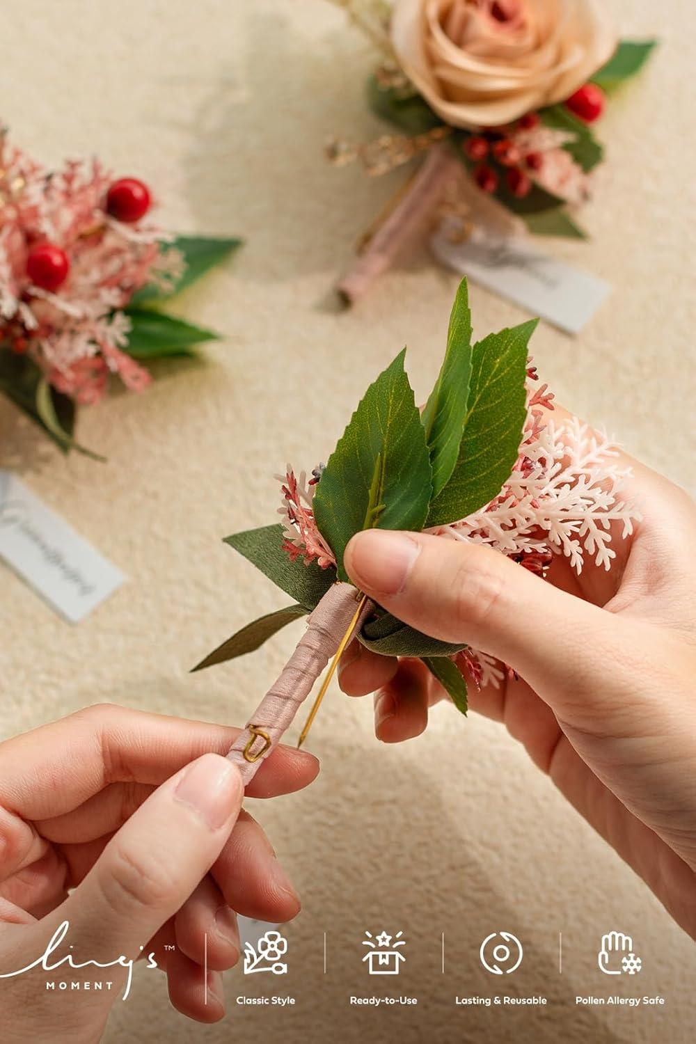 Don’t miss out on our limited-time offer: buy Ling’s moment Boutonniere for Men, 6pcs Groom Groomsmen Boutonniere, Artificial Flowers for Wedding Decor/Prom/Homecoming, etc.Sand Beige White(Pk-cinnamon Rose & Pink), get {accessory} free!