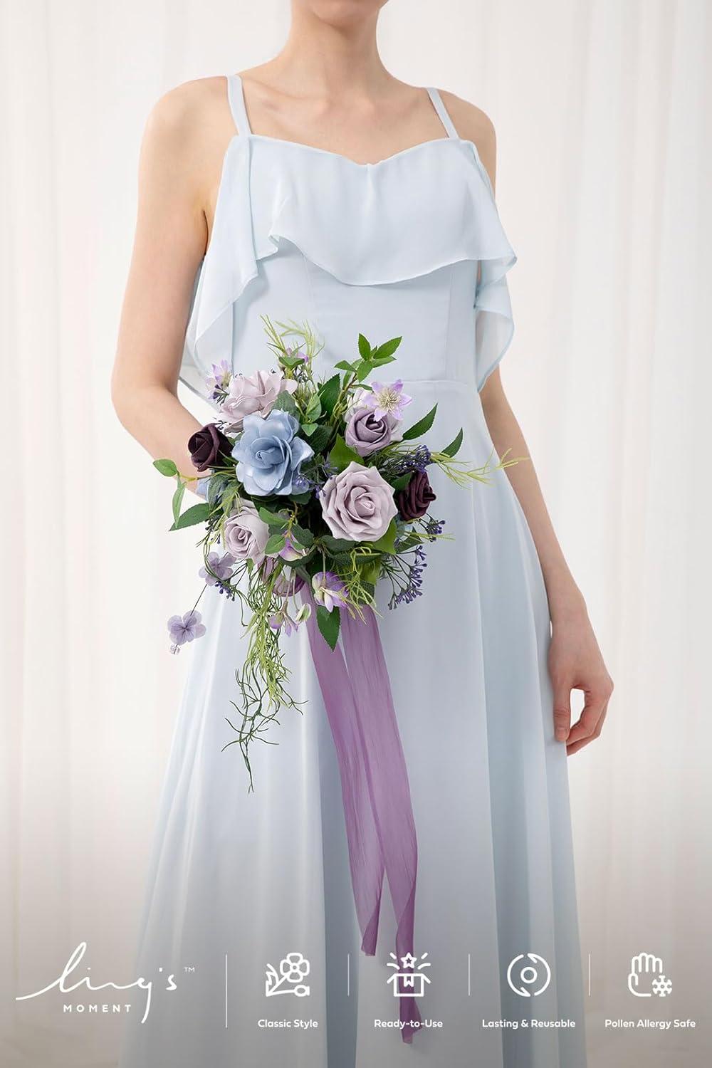 imageLings moment Bridesmaid Bouquet Wedding Bouquets for Bridesmaids 7 Inch Bridal Bouquets for Bridesmaids Wedding Ceremony Anniversary etcPrplgold  Lilac