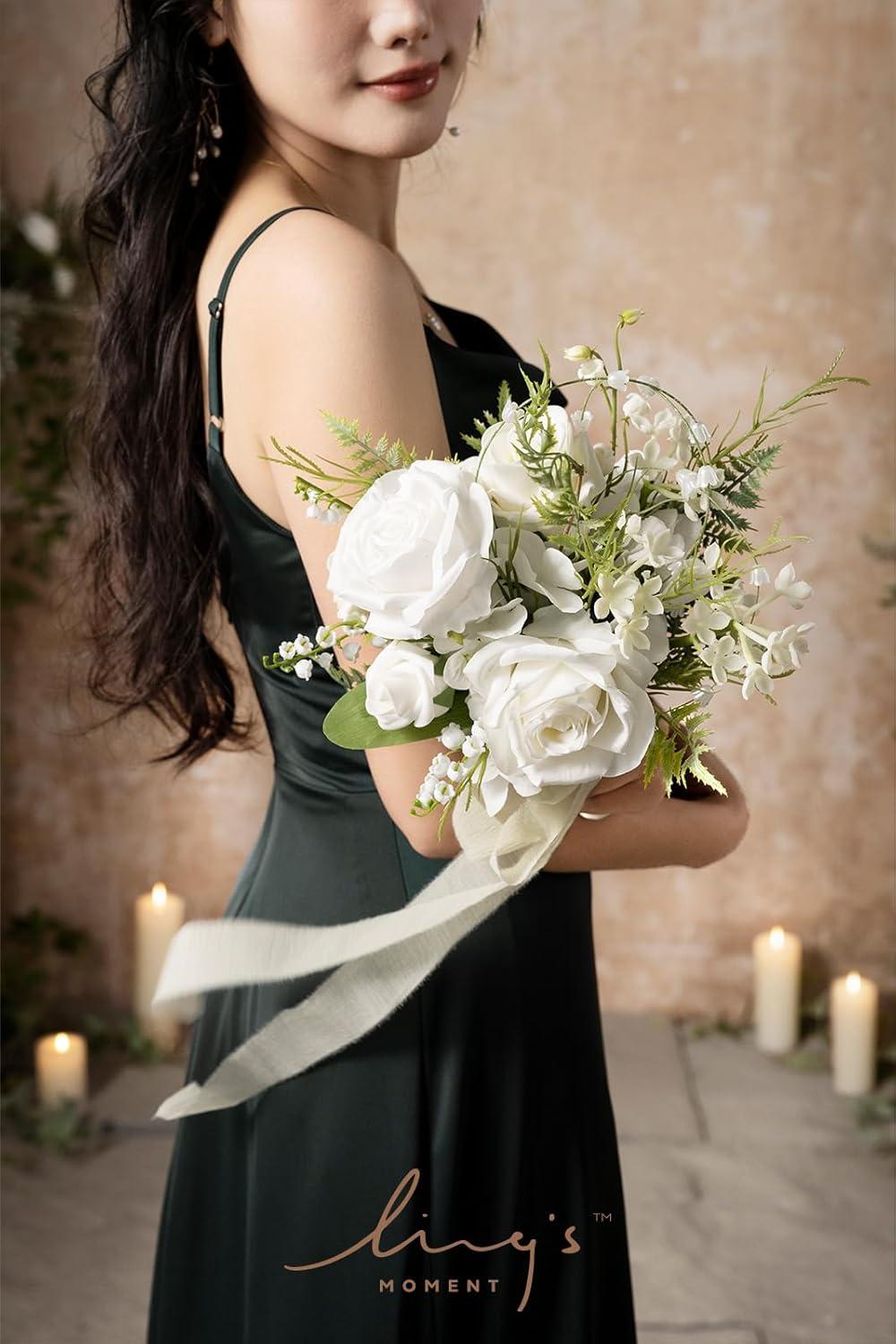 imageLings moment Bridesmaid Bouquet Wedding Bouquets for Bridesmaids 7 Inch Bridal Bouquets for Bridesmaids Wedding Ceremony Anniversary etcWhtwhite