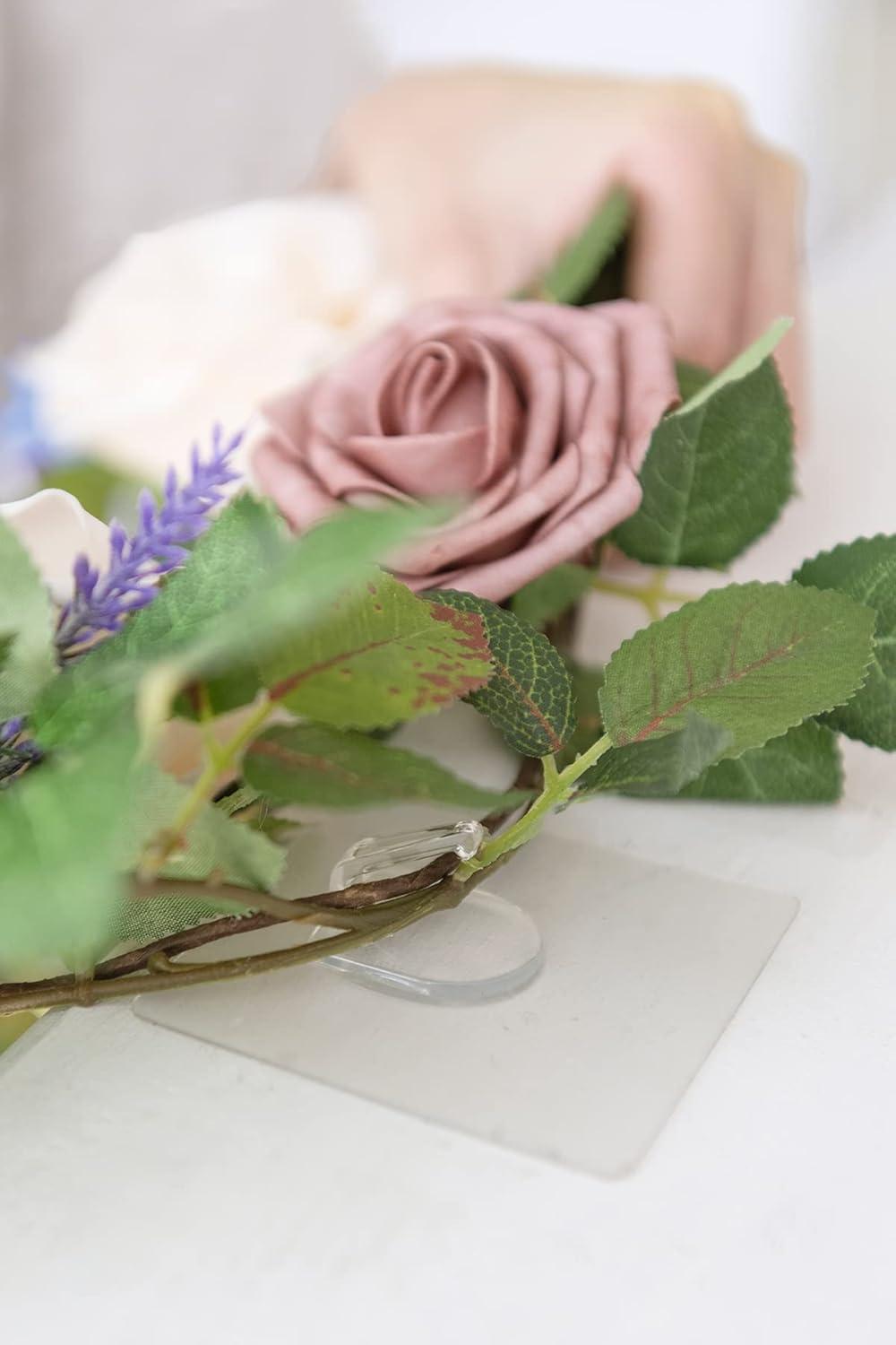 The adhesive Hooks can be used to hang flower garland; floral Tape can be used to tie bouquet handle