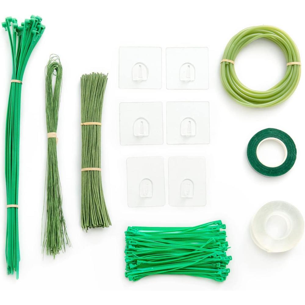 What You Get: You will received 10″ artificial flower stem ×200 ,23.6″ iron wire ×100,10ft green tubing ×1,Adhesive Hooks ×6,Floral Tape ×1,Double Sided Tape ×1,15.7″ Recyclable cable ties ×20,6″ Recyclable cable ties ×90