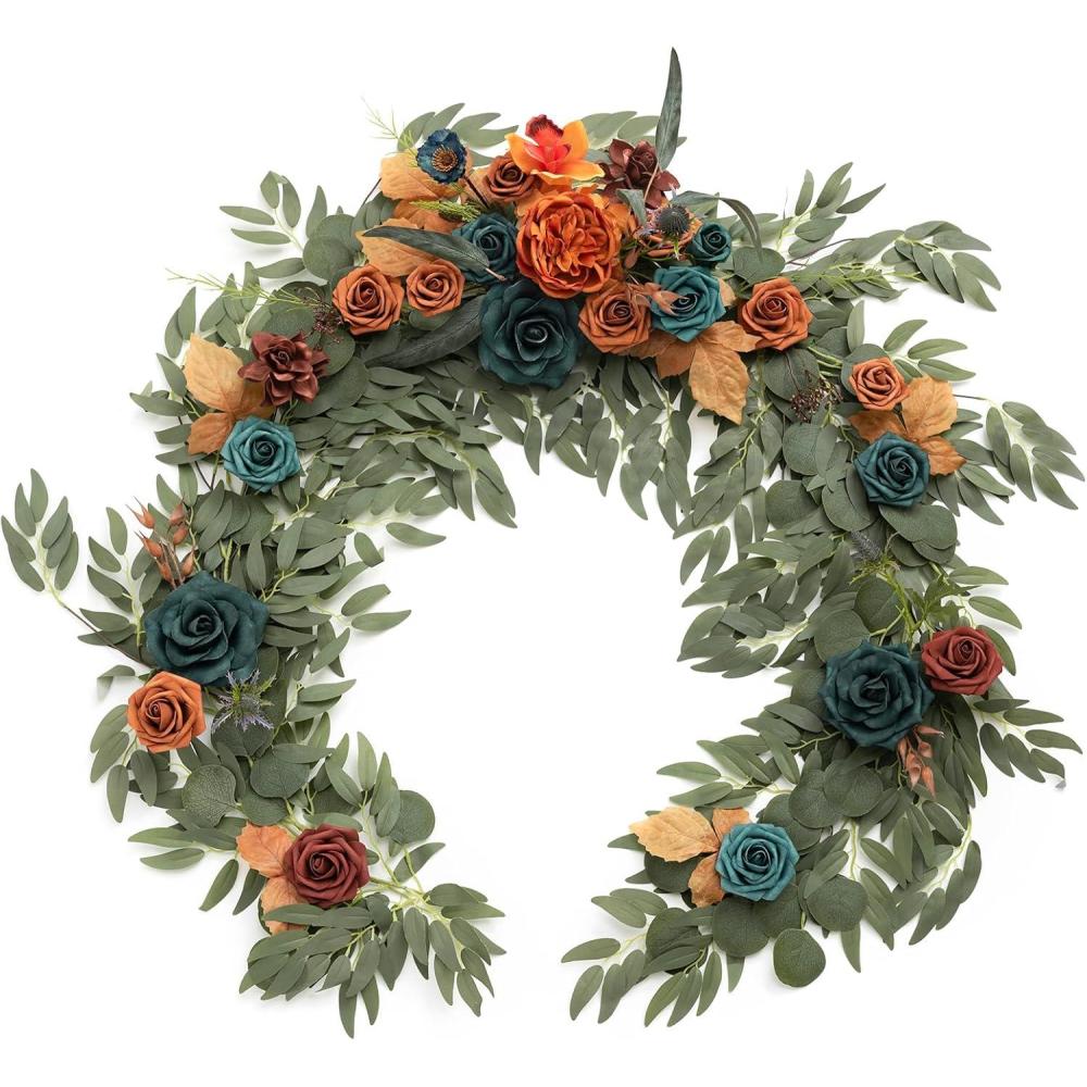 imageLings moment Eucalyptus Garland with Flowers 6FTTable Runner with Flowers Marsala Mantle Decor Handcrafted Wedding Centerpieces for Rehearsal Dinner Bridal Shower  Red ampamp WhiteOrdark Teal  Burnt Orange