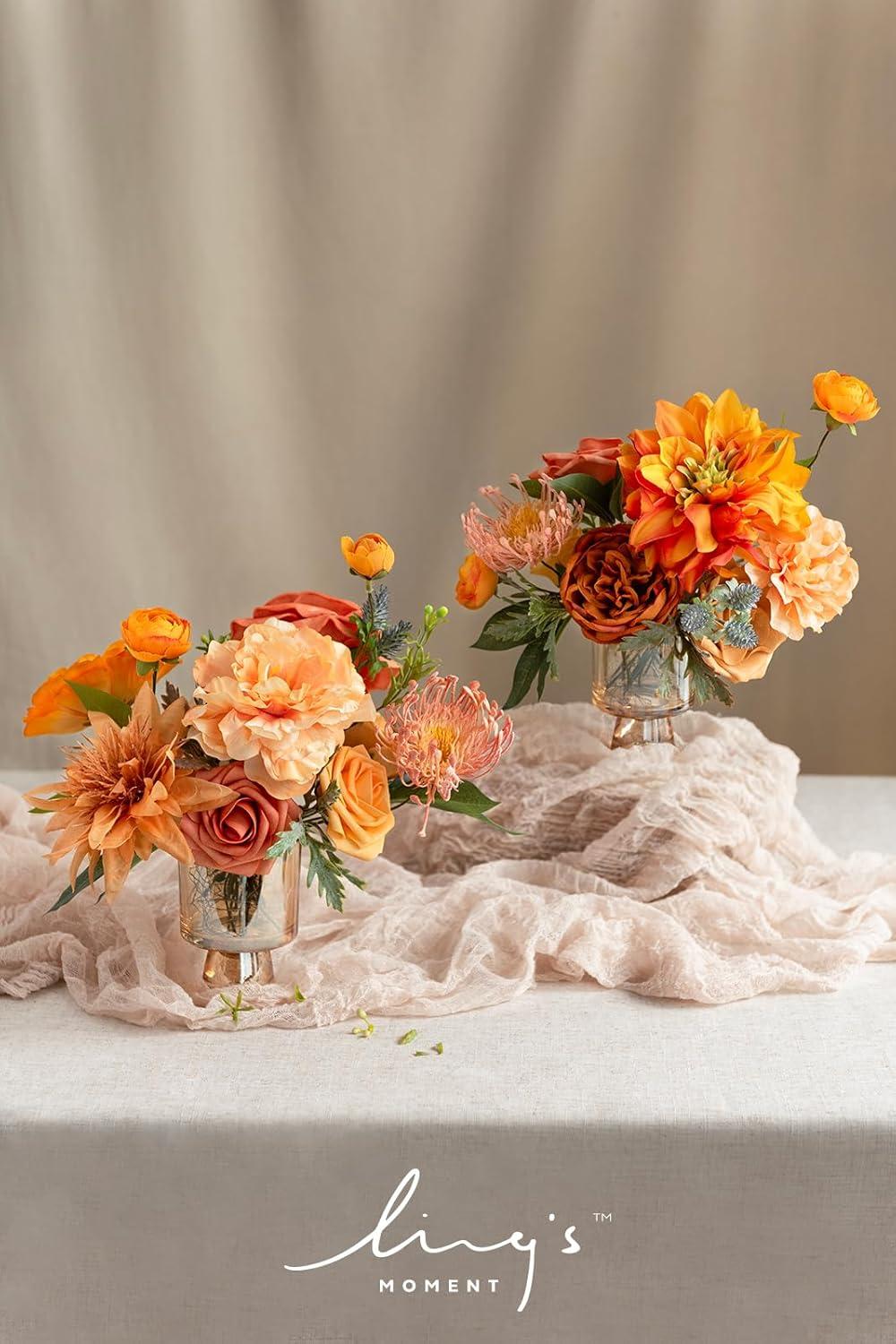 Ling’s moment Fake Flowers Box, Faux Artificial Greenery Stems Foam Roses Silk Fabic Flower for Centerpieces Bouquet Wedding Table Floral Arrangements Bridal Shower Party, Tawny Beige, Deluxe Combo(Or-vintage Coral & Orange)