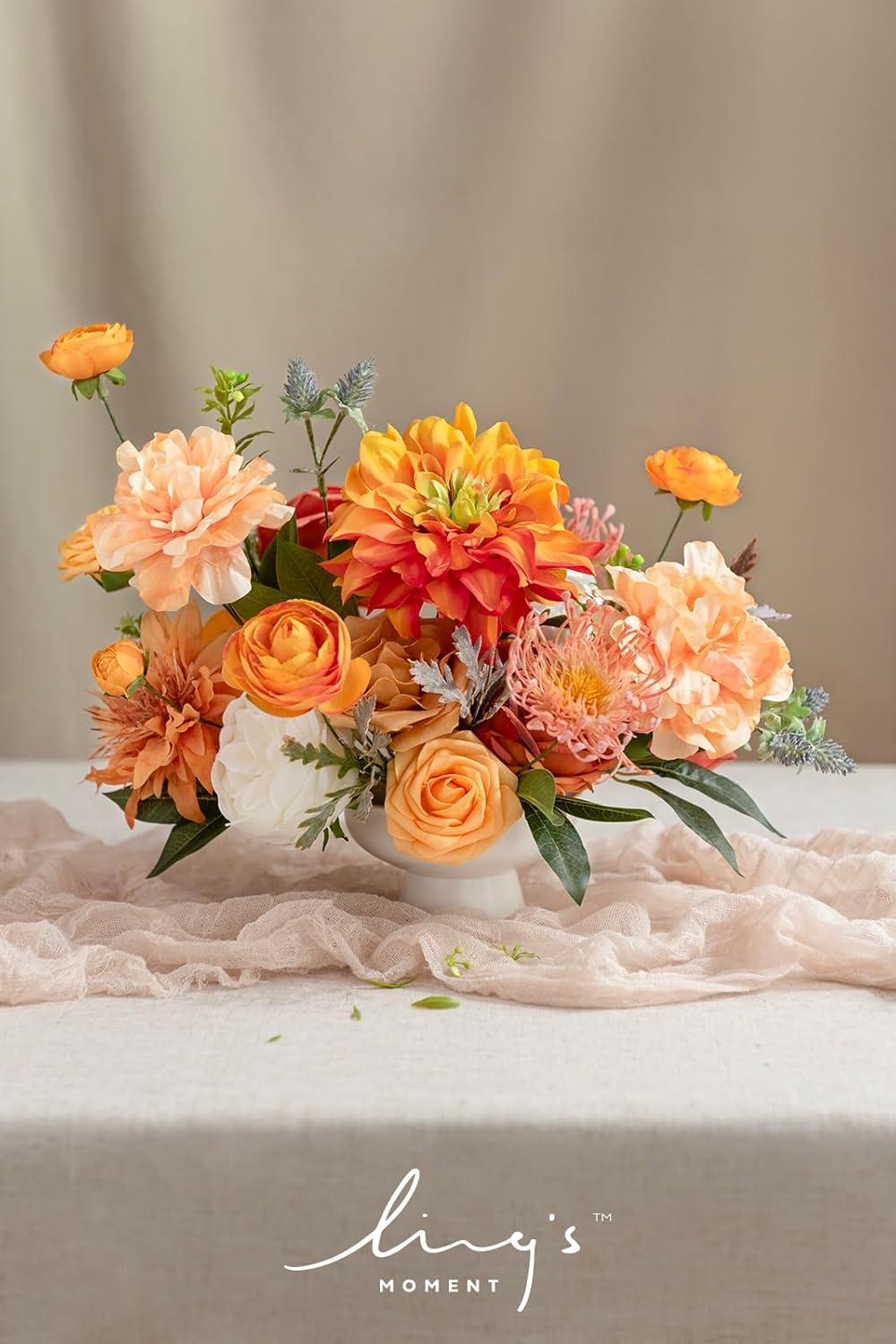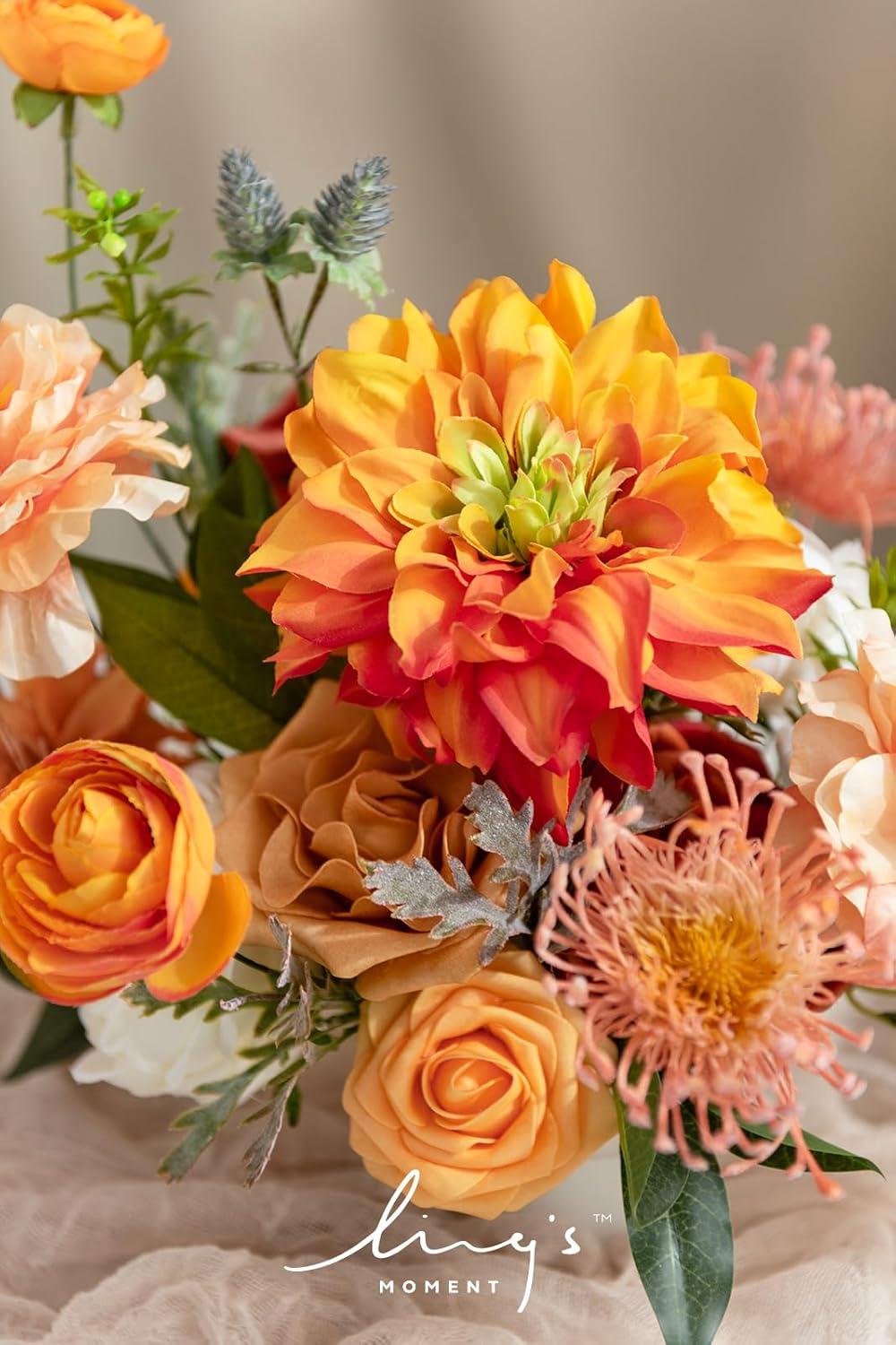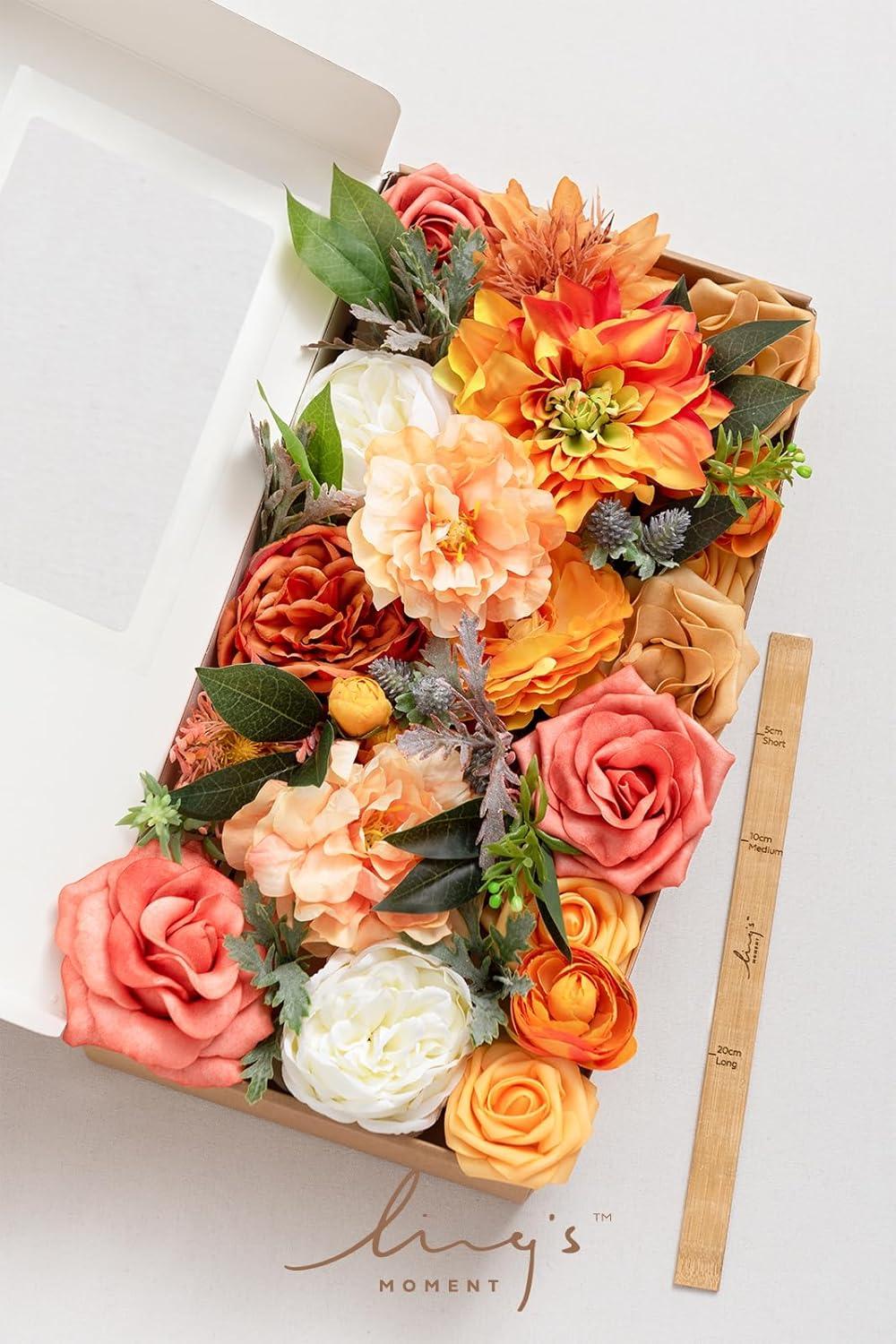 Ling's moment Fake Flowers Box, Faux Artificial Greenery Stems Foam Roses Silk Fabic Flower for Centerpieces Bouquet Wedding Table Floral Arrangements Bridal Shower Party, Tawny Beige, Deluxe Combo(Or-vintage Coral & Orange)